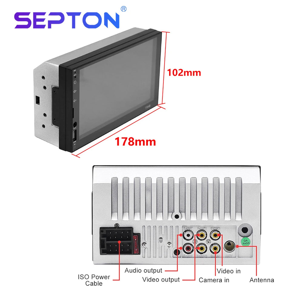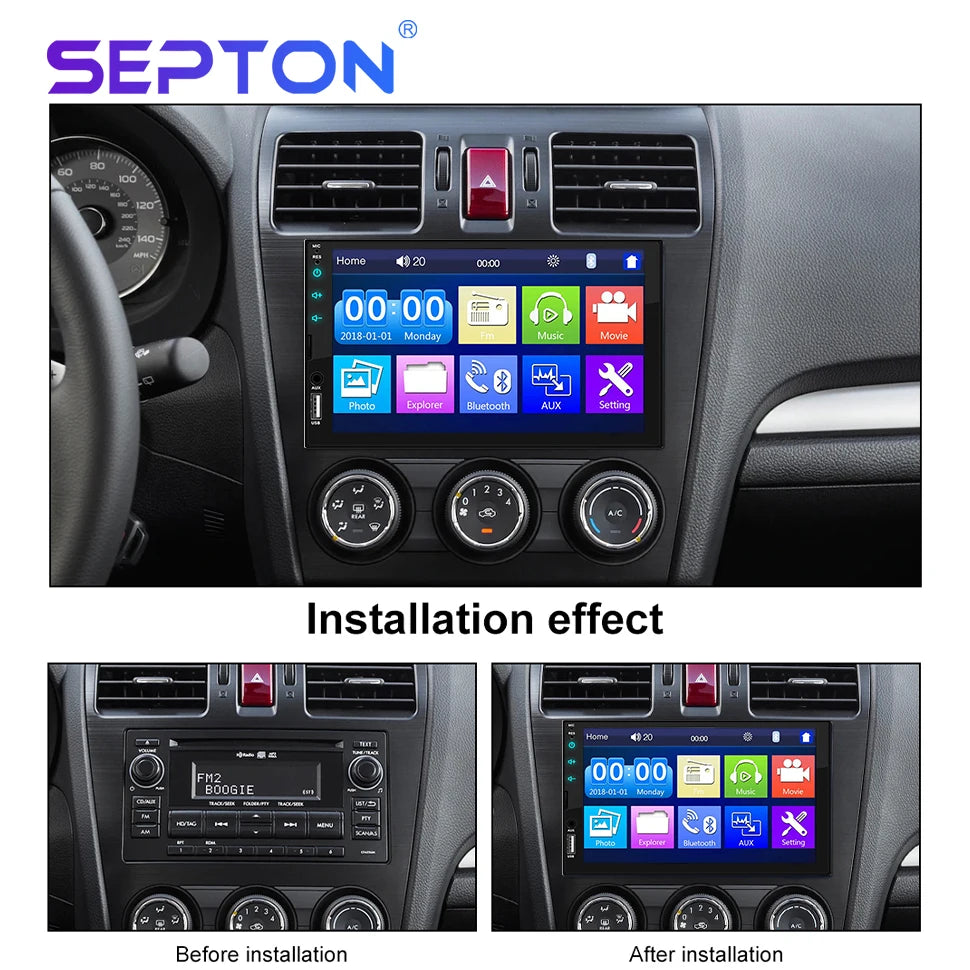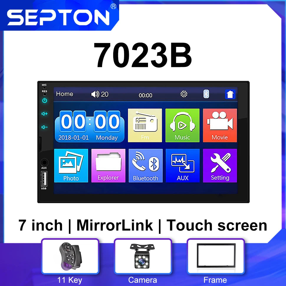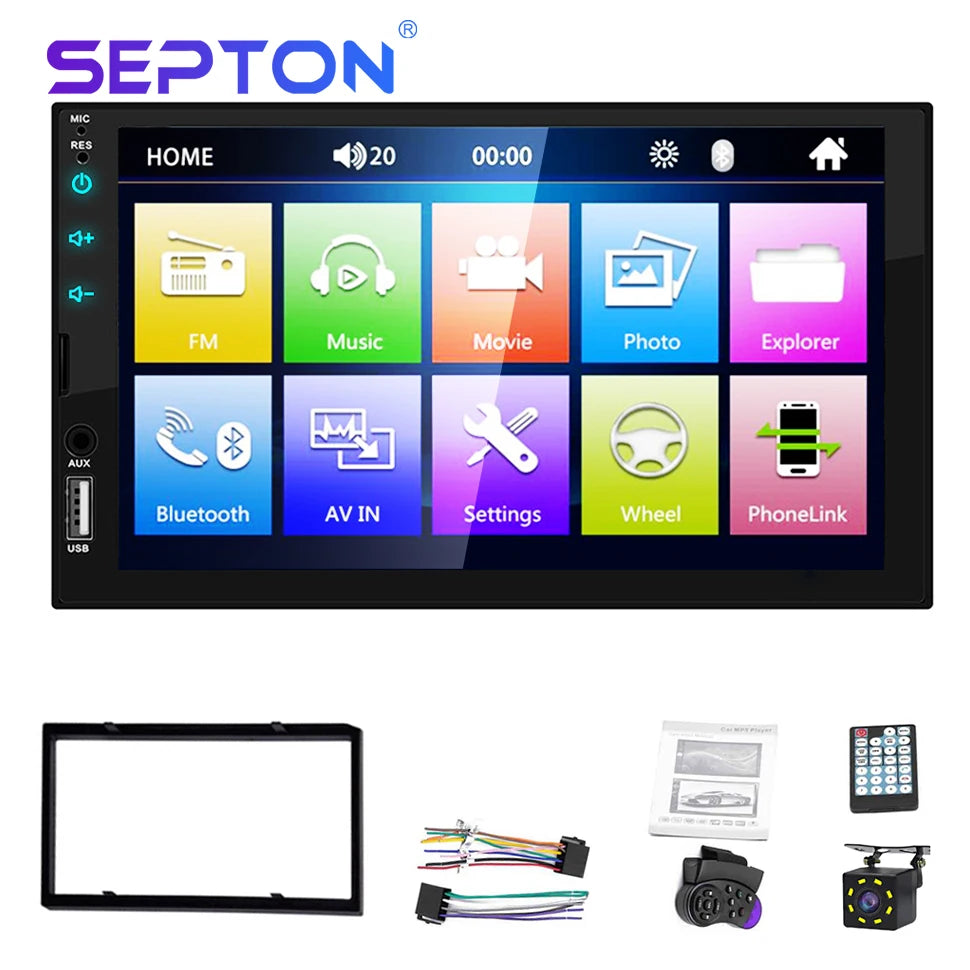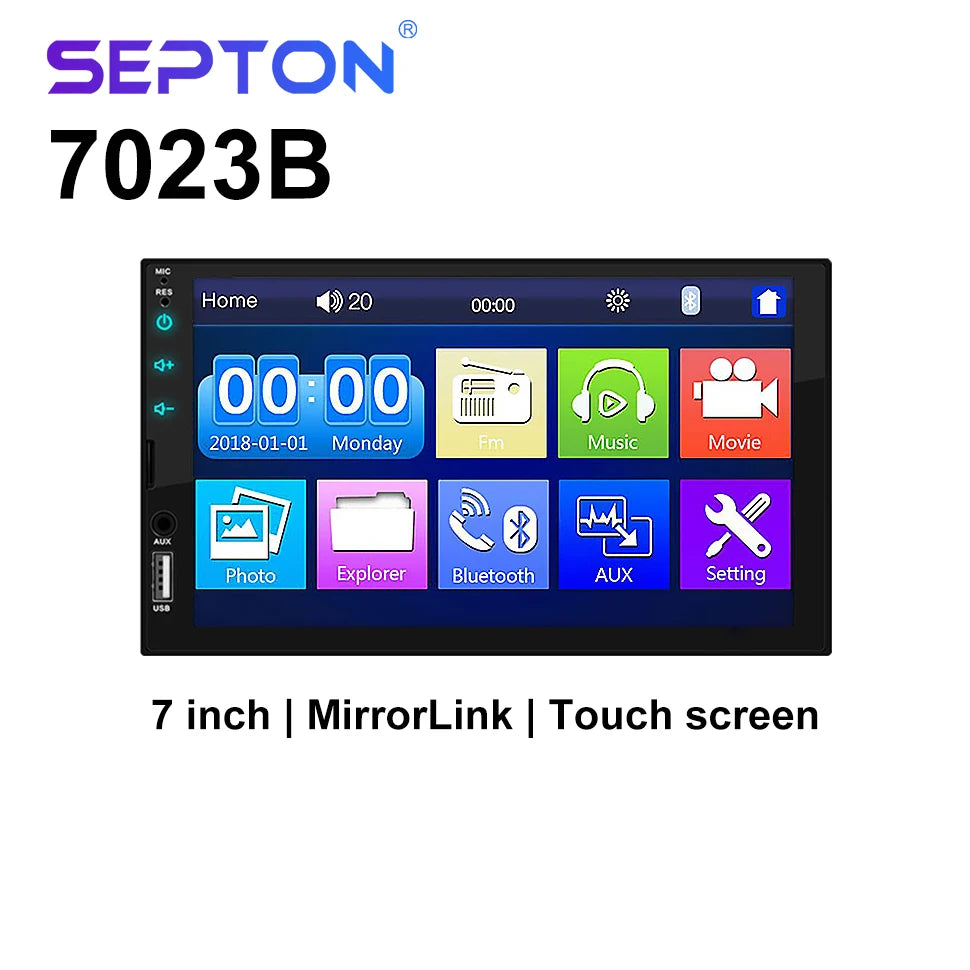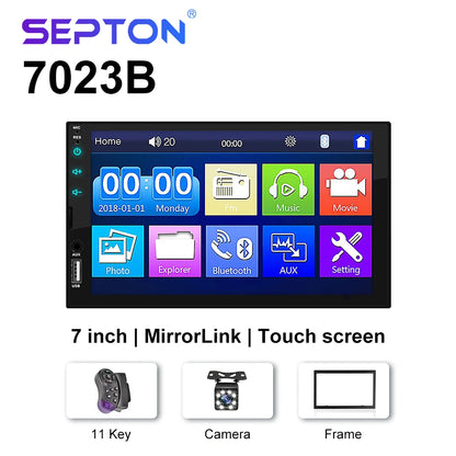 SEPTON Car Radio Stereo Audio for Universal Car MP5/FM/BT Support Automotive Mirror Lin-k Car Radio Multimedia Player 2Din Touch Screen