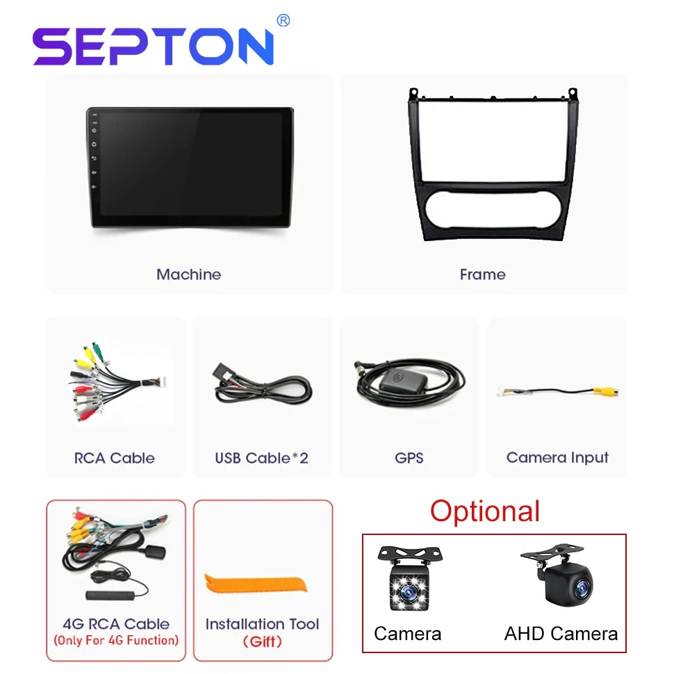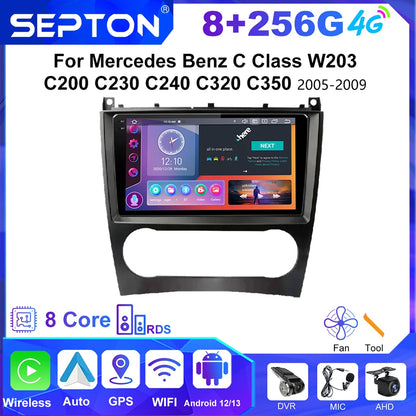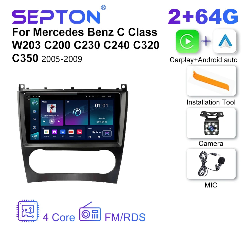SEPTON Android 2Din Car Stereo Radio for Mercedes Benz C Class W203 C200 C230 C240 C320 C350 2005-2009 Multimedia GPS CarPlay