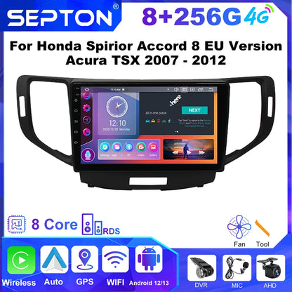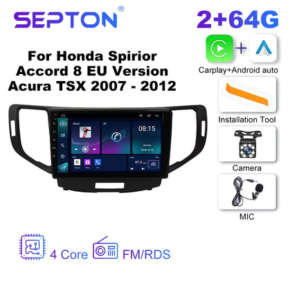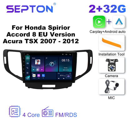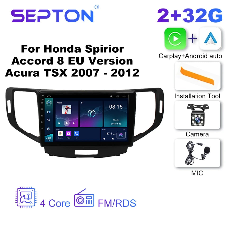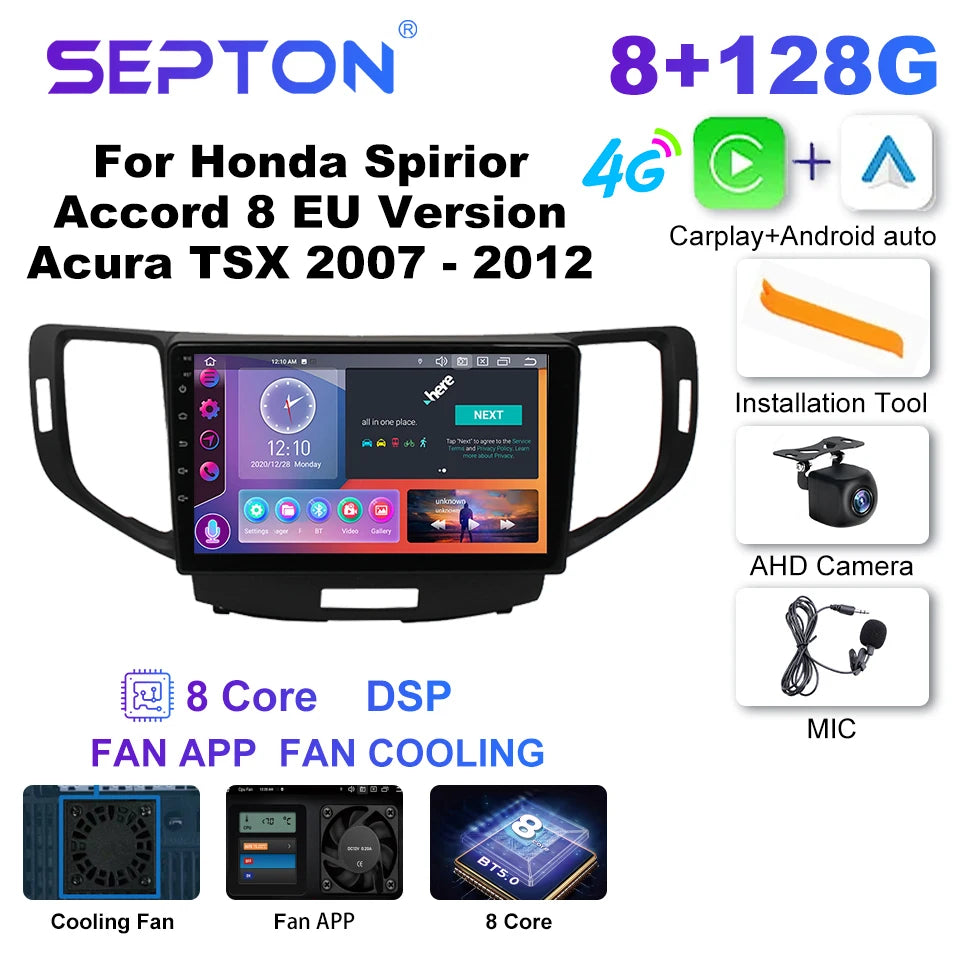 SEPTON Car Radio Multimedia Player for Honda Spirior Accord 8 EU Version Acura TSX 2007 - 2012 CarPlay GPS 8core Head Unit 4GModel: for Honda Spirior Accord 8 EU Version Acura TSX 2007 - 2012