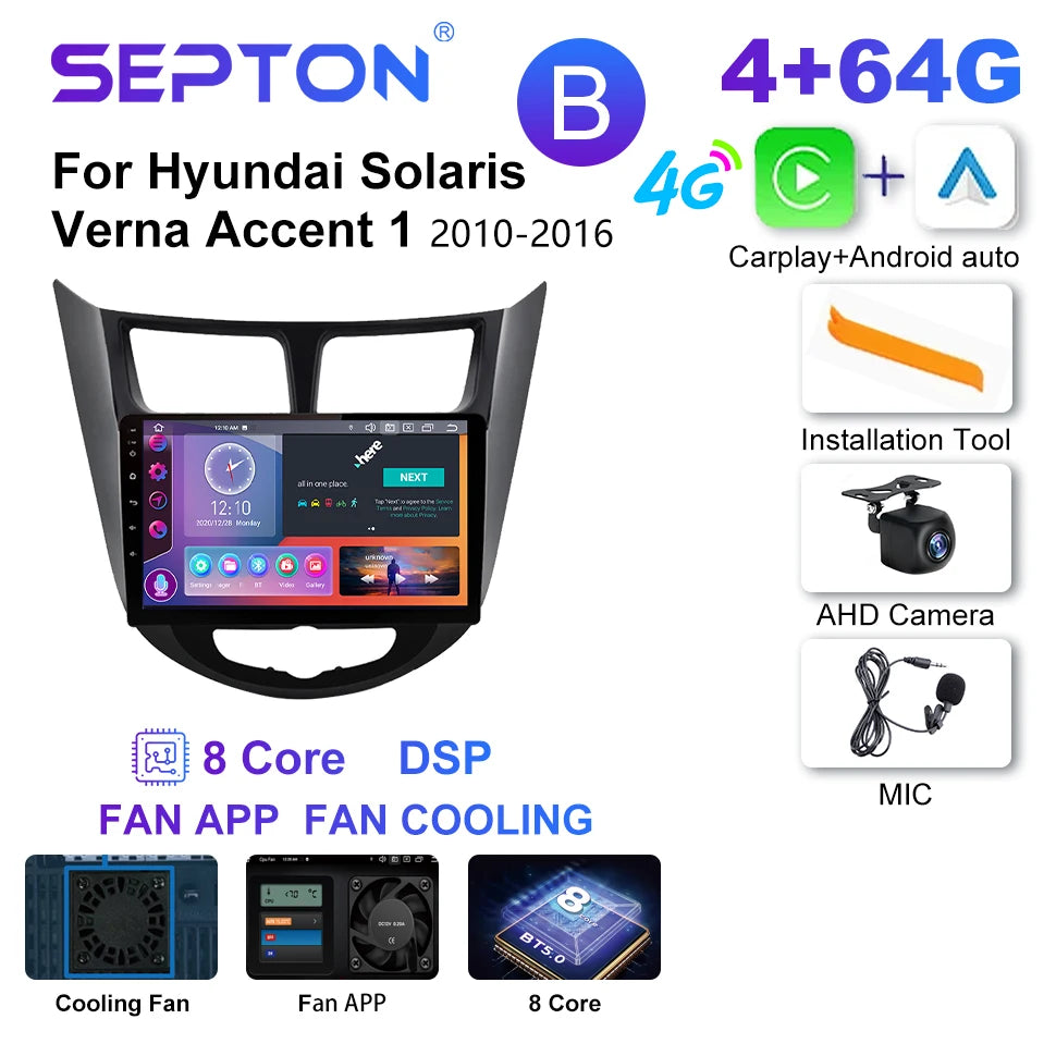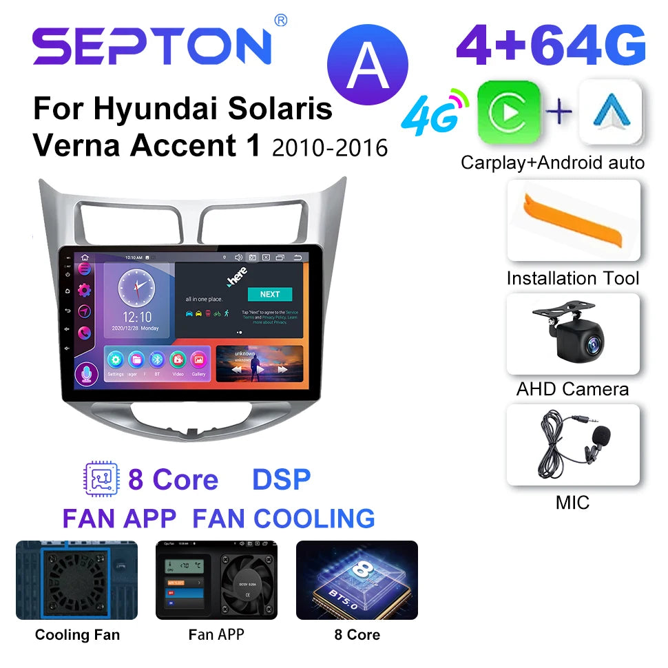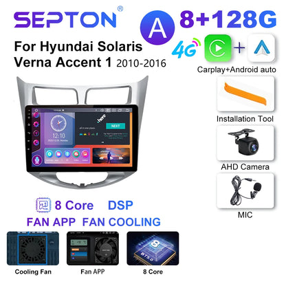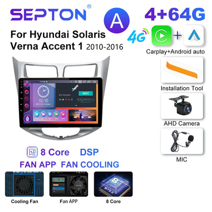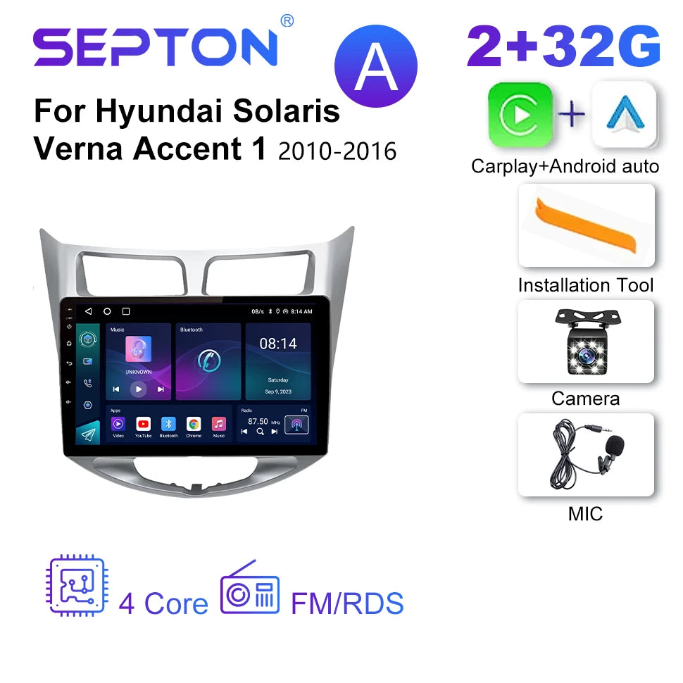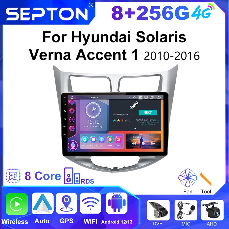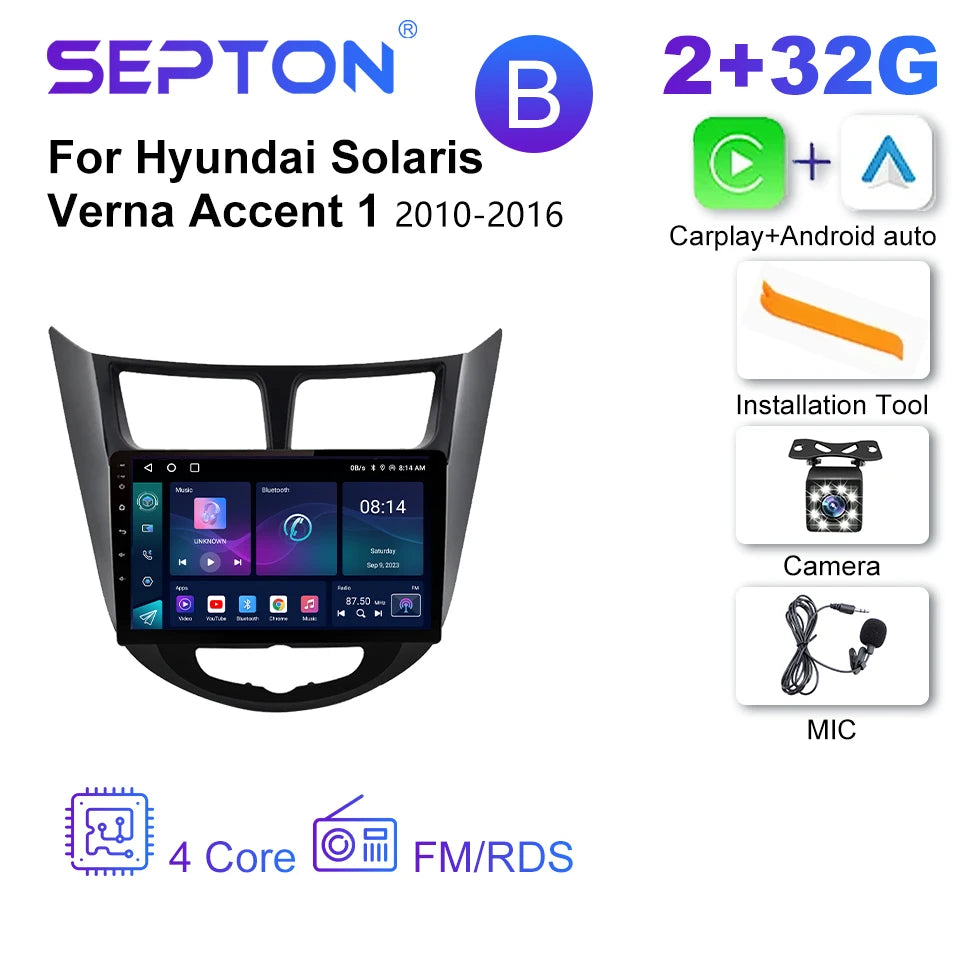 SEPTON Car Stereo Radio for Hyundai Solaris Verna Accent 1 2010-2016 Multimedia Player CarPlay Android 12 Navi GPS 2Din HeadUnit