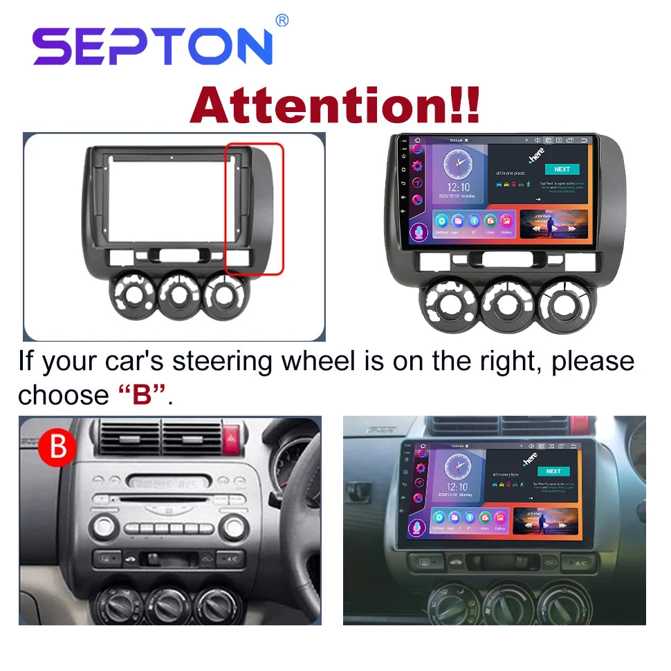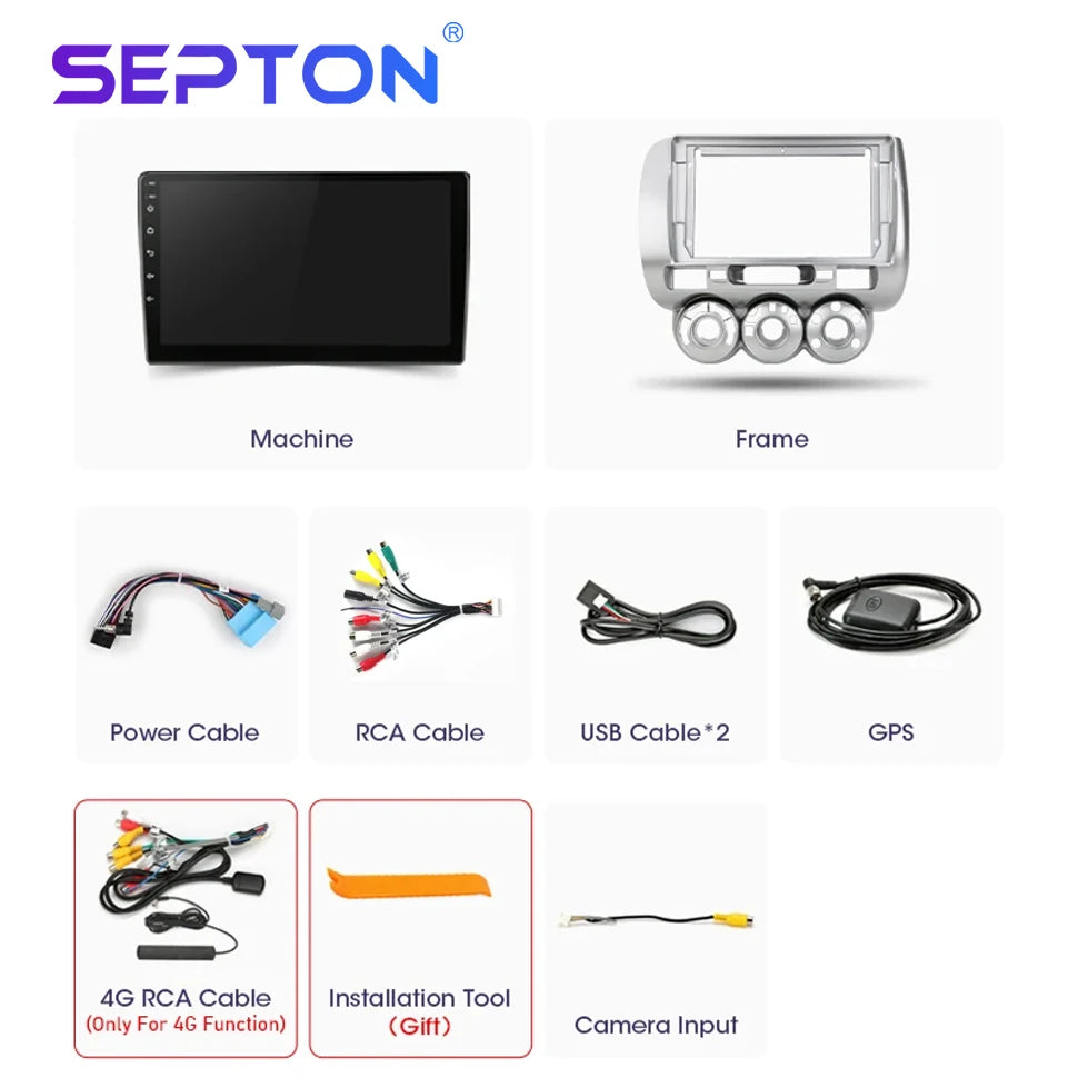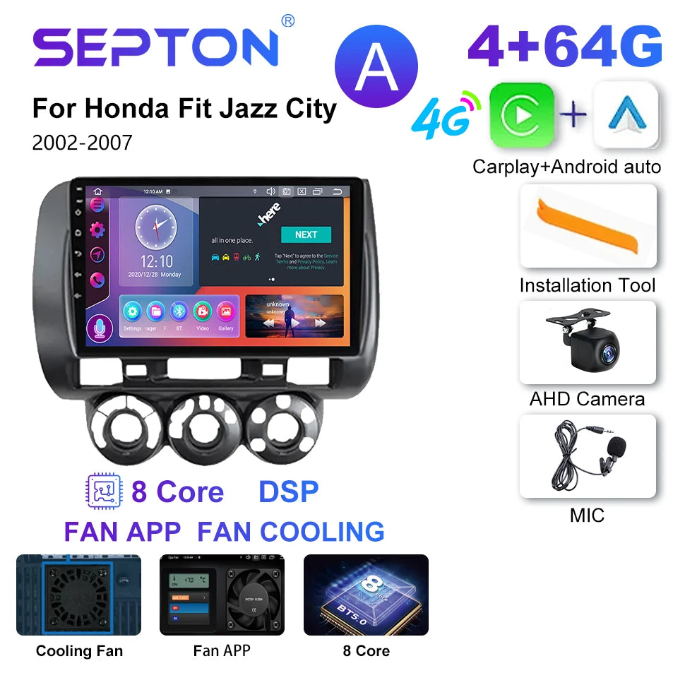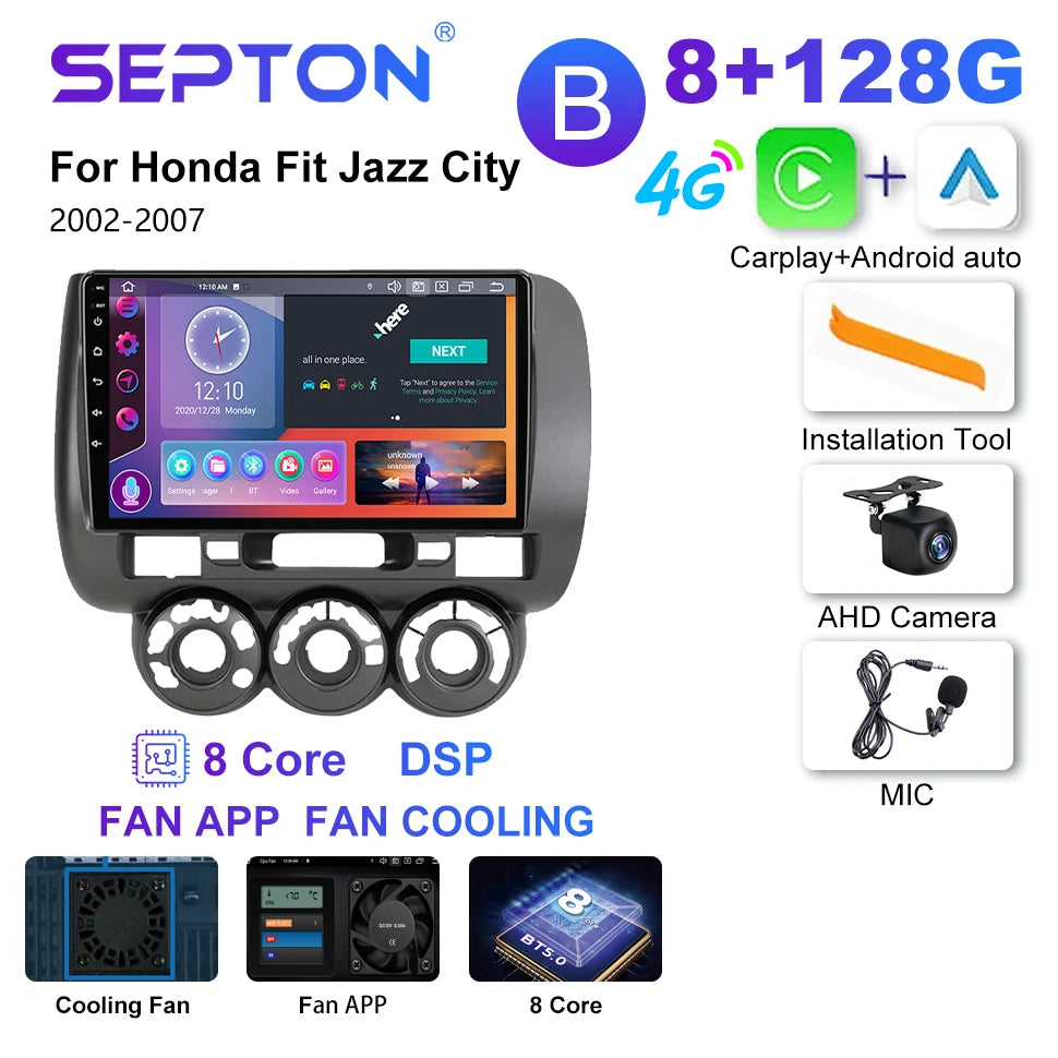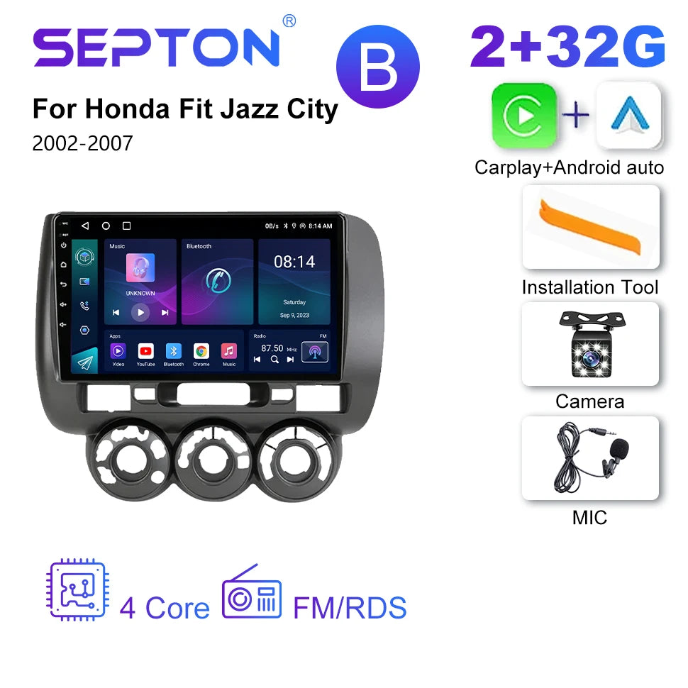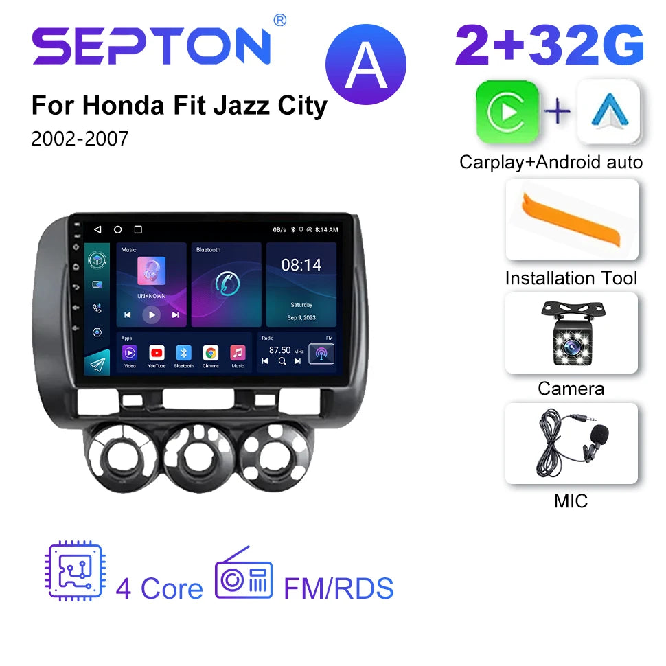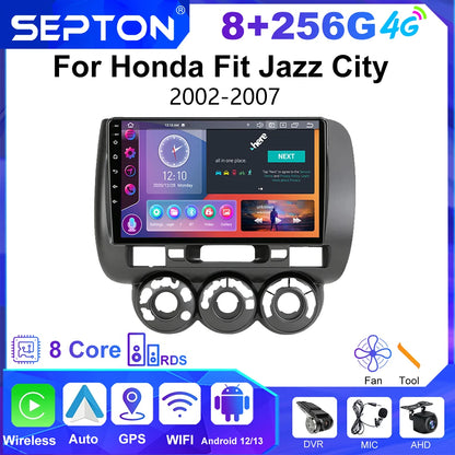 SEPTON 9'' Android 12 Car Radio For Honda Fit Jazz City 2002-2007 Multimedia Video Player Carplay Auto Stereo GPS 2 Din Headunit
