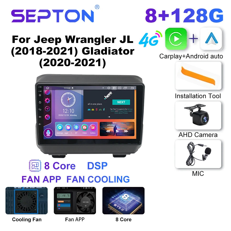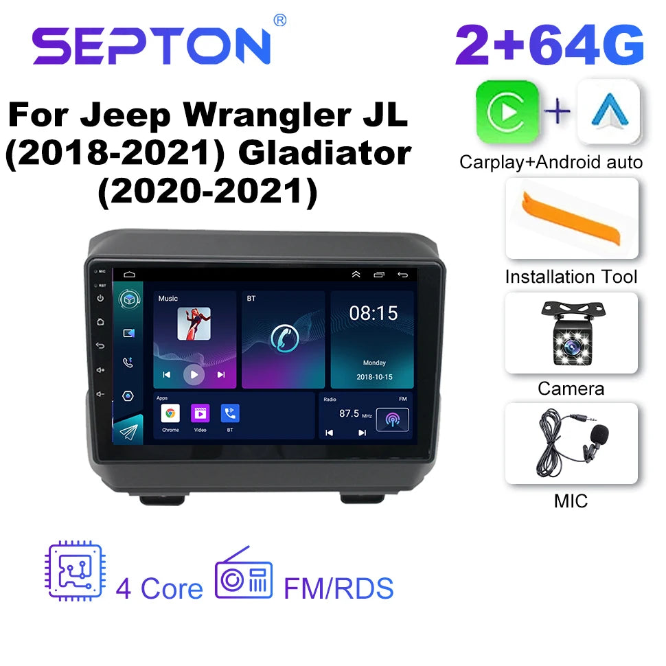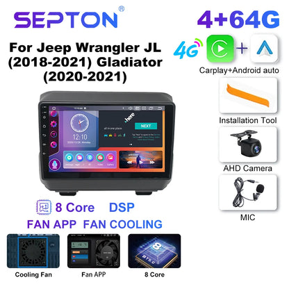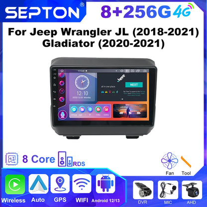 SEPTON Car Radio Multimedia Player for Jeep Wrangler JL (2018-2021) Gladiator (2020-2021) Carplay 8Core 4G Automotive Multimedia