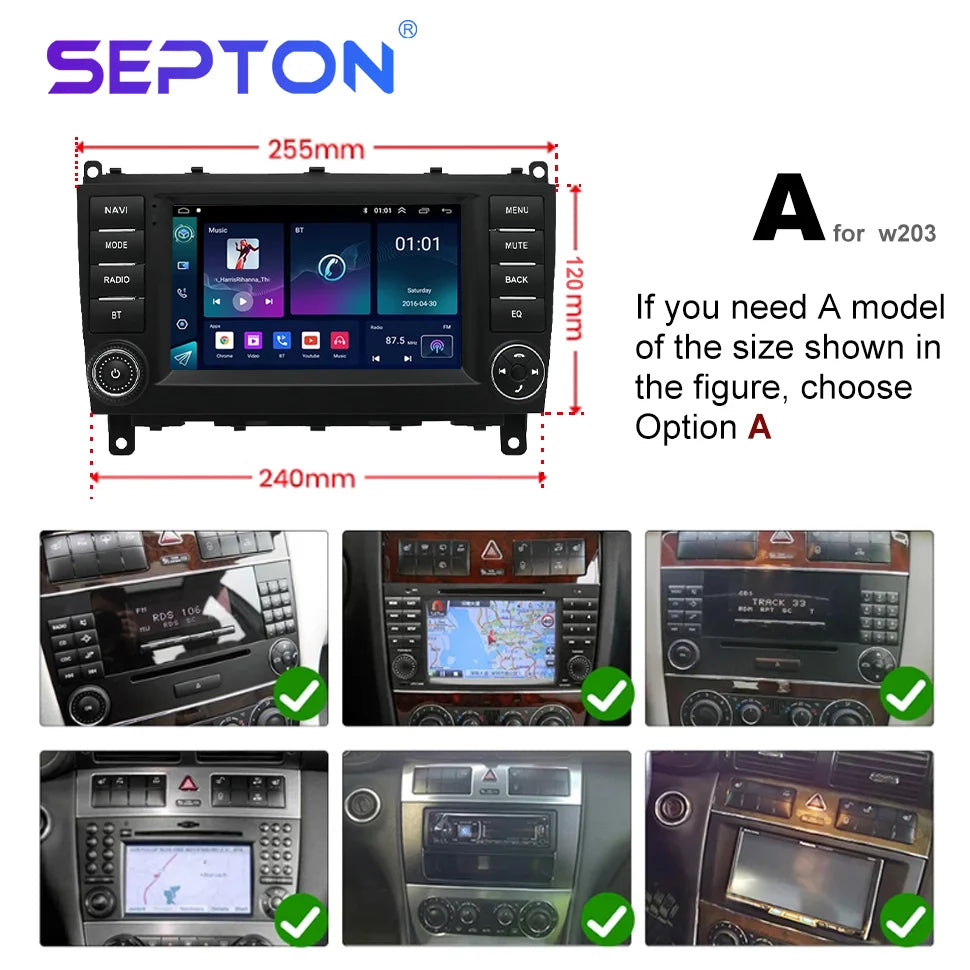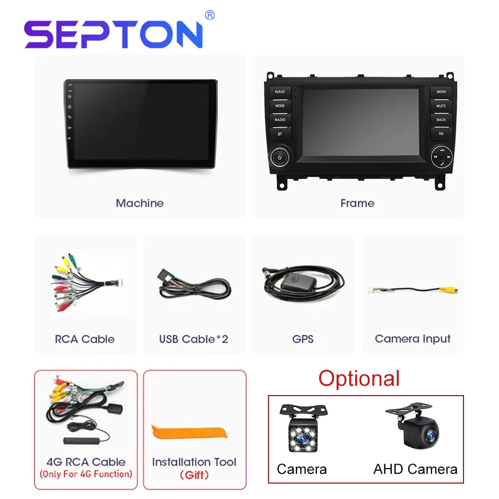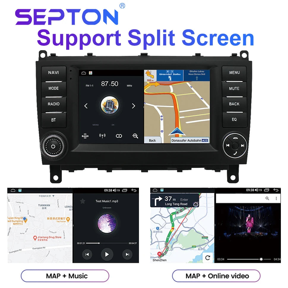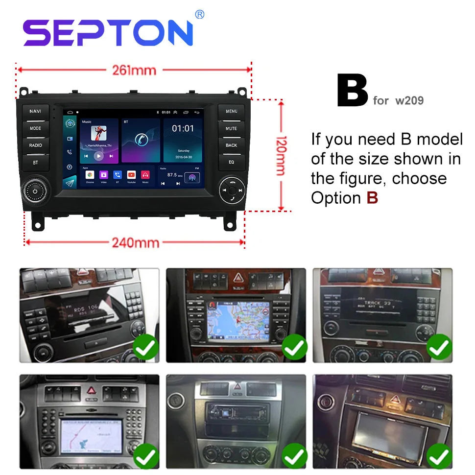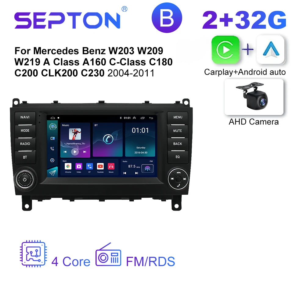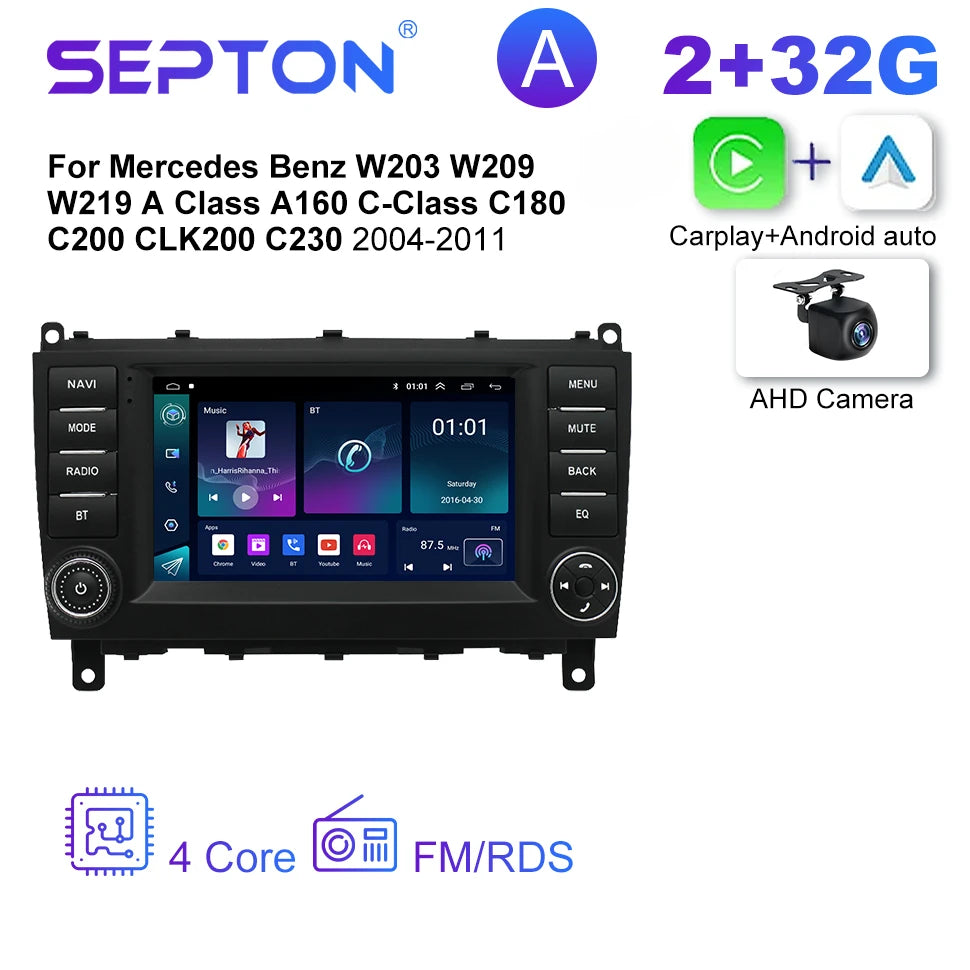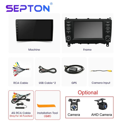SEPTON Android 2Din Car Radio for Mercedes Benz W203 W209 W219 A Class A160 C-Class C180 C200 CLK200 C230 2004-2011 GPS CarPlay