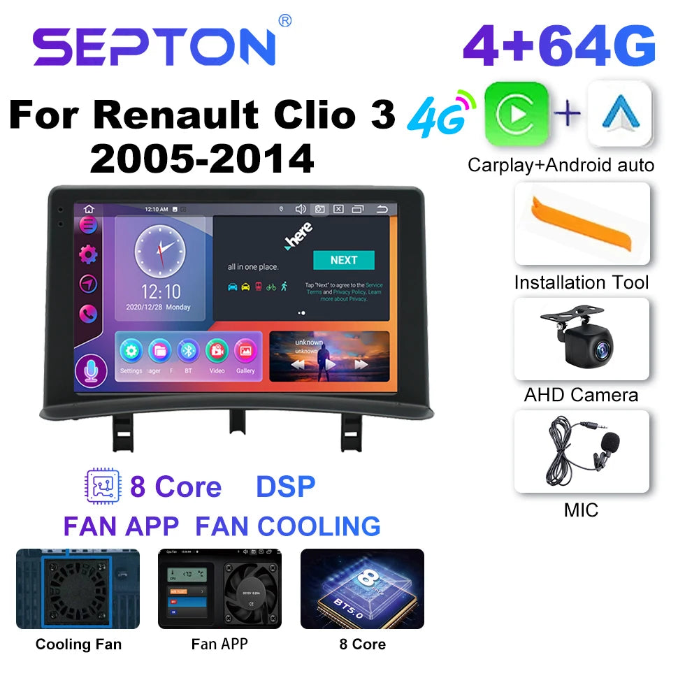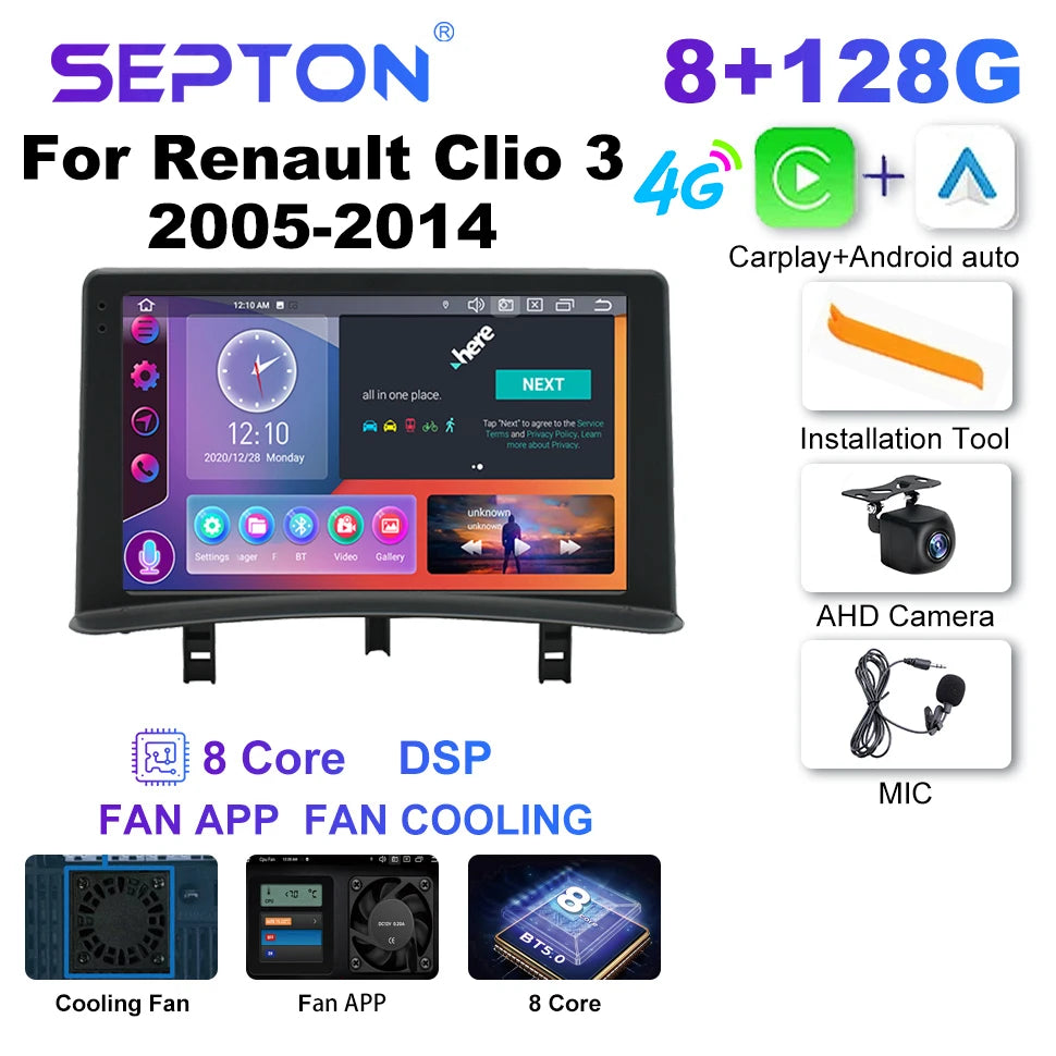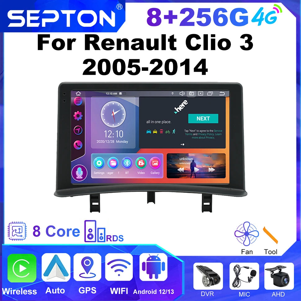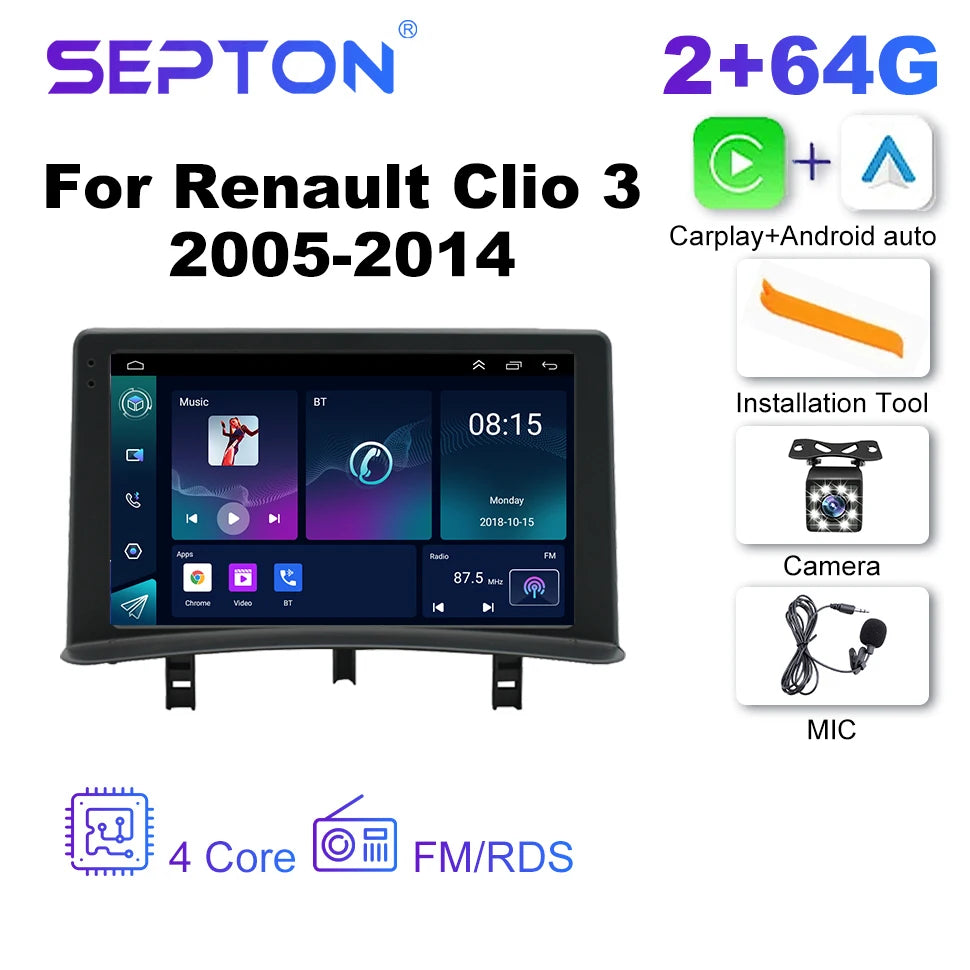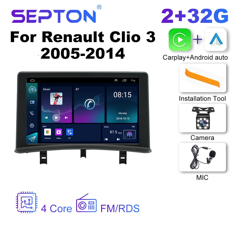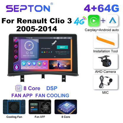 SEPTON Car Radio for Renault Clio 3 2005-2014 Wireless Carplay 8Core WIFI 4G IPS Auto Smart Systems Car Radio Multimedia Player