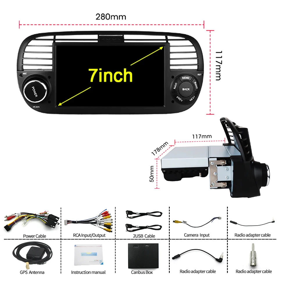 SEPTON Car Radio Stereo Audio for Fiat 500 2007-2015