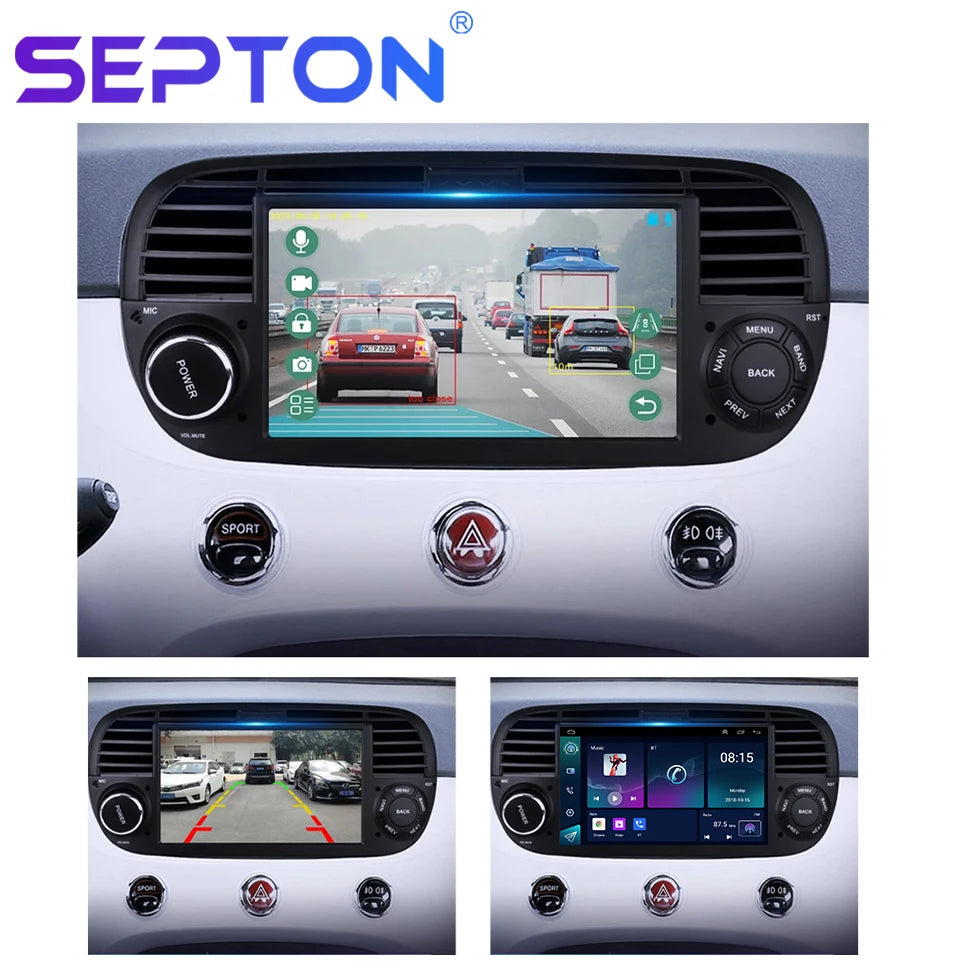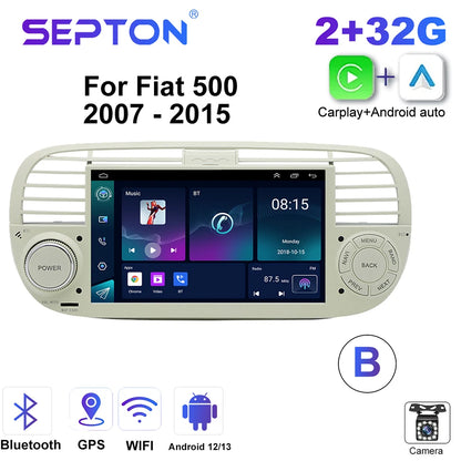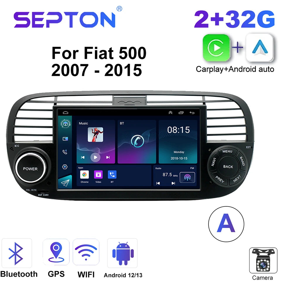 SEPTON 2 Din Wireless Carplay& Android Auto Car Radio for Fiat 500 2007-2015 Multimedia Video Player GPS BT Navigation Head Unit