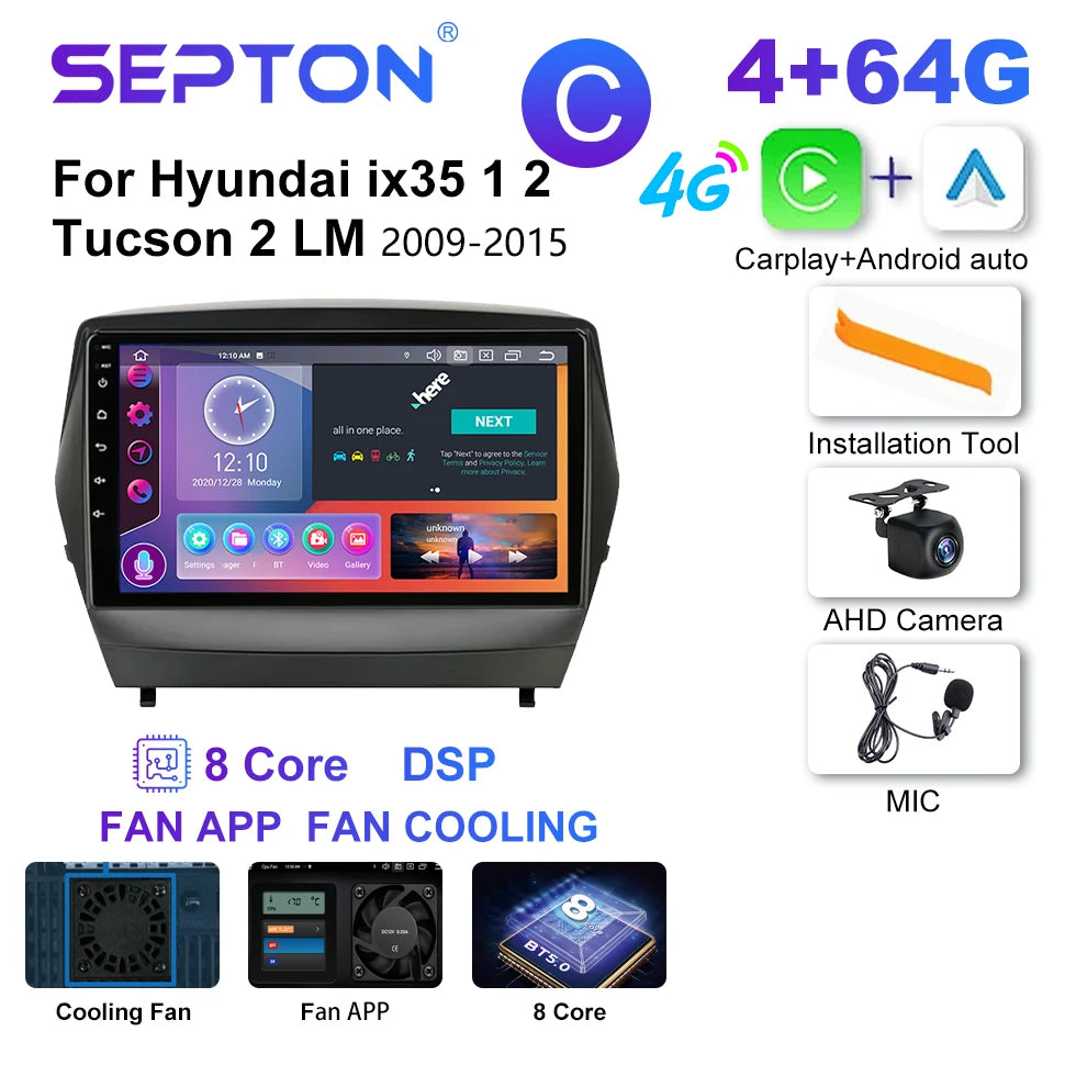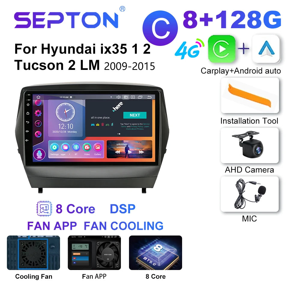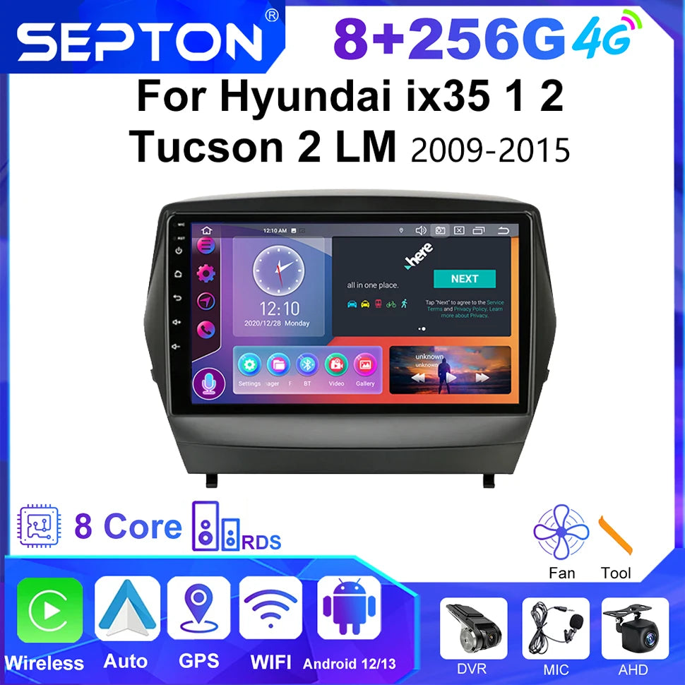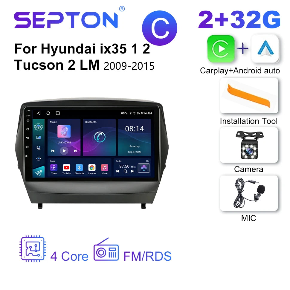 SEPTON 2Din Car Radio for Hyundai ix35 1 2 Tucson 2 LM 2009-2015 4G Android 12 CarPlay 9'' Multimedia Player Navi GPS Head Unit