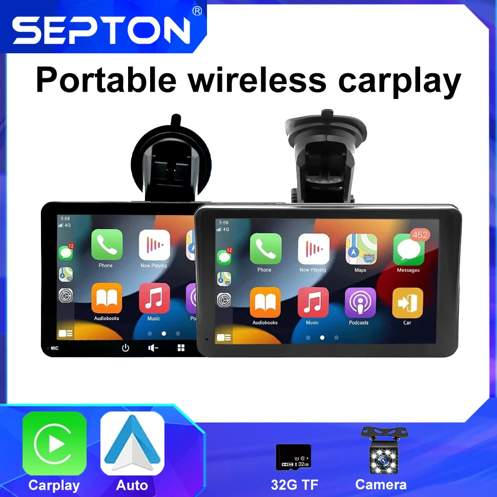 SEPTON Car Radio Stereo Audio Universal Portable HD Touch Screen Wireless Carplay BT 2 Din Multimedia Video Player