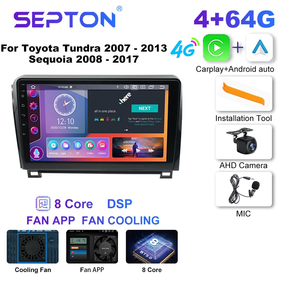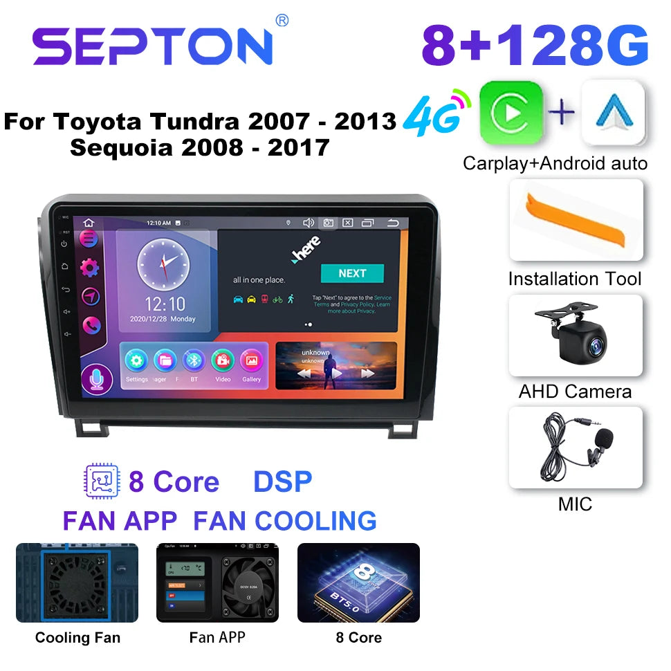 SEPTON Android 2Din Car Radio Multimedia Player For Toyota Tundra 2007 - 2013 Sequoia 2008 - 2017 CarPlay Navigation GPS 4G NET