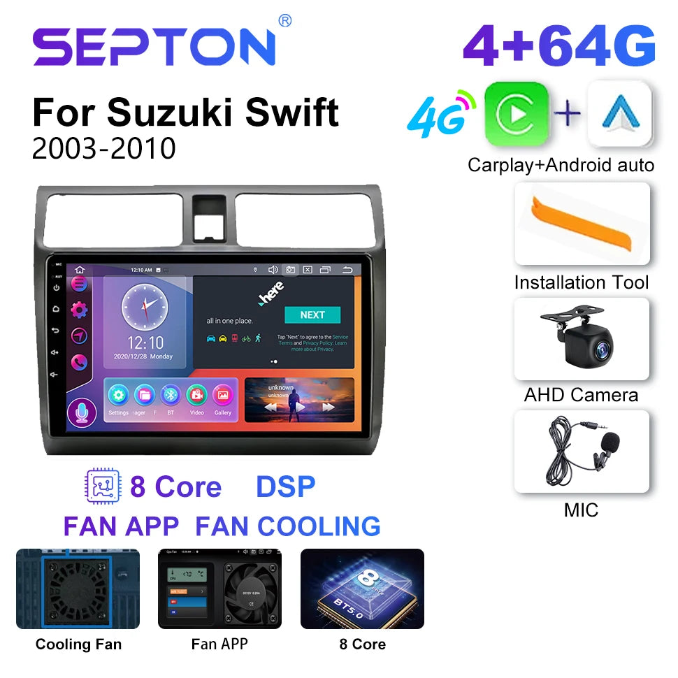 SEPTON Android Auto Radio Wireless CarPlay for Suzuki Swift 2003-2010 4G Car Multimedia Video Player Navigation Stereo GPS DVD
