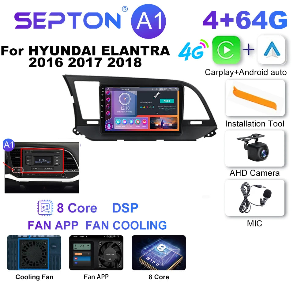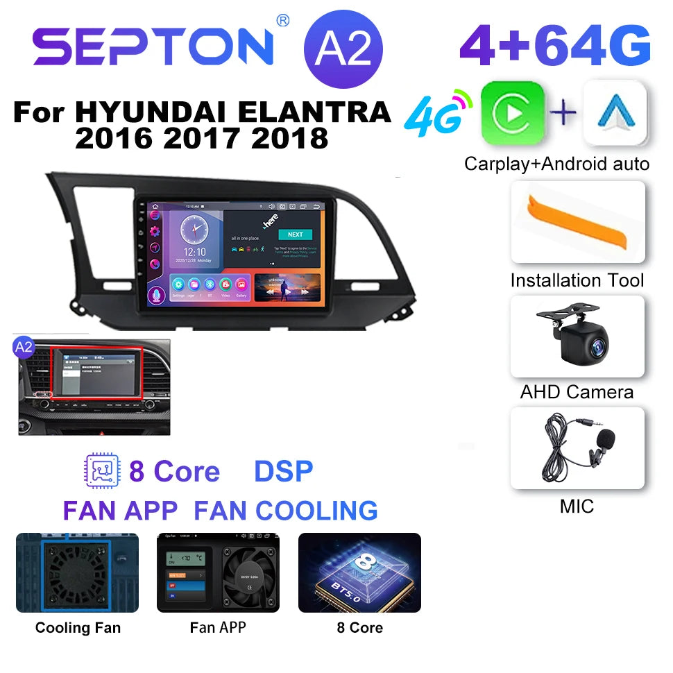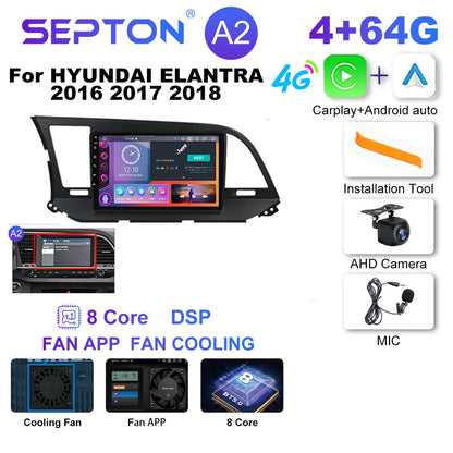 SEPTON Android Car Radio for HYUNDAI ELANTRA 2016 2017 2018 Carplay Navi GPS 8core Android Multimedia Player 2Din Head Unit 4G