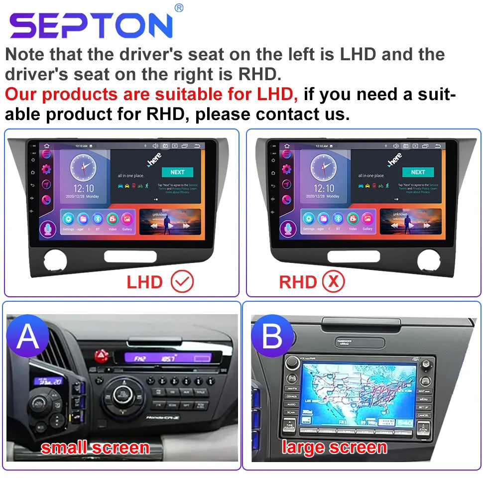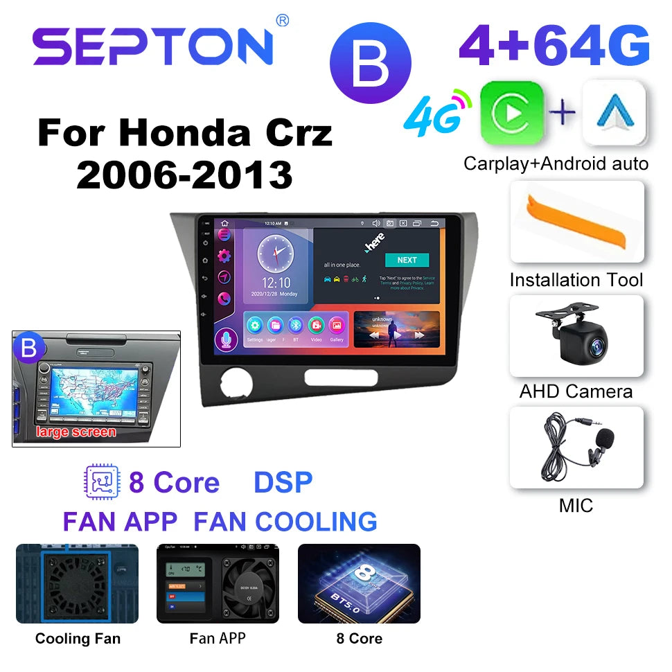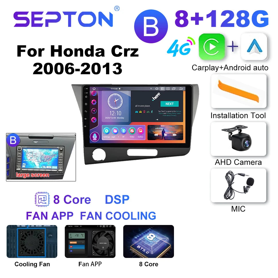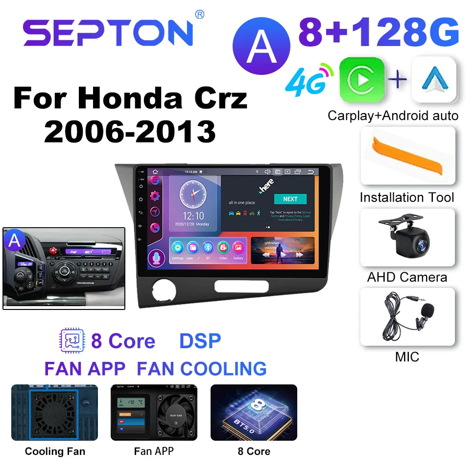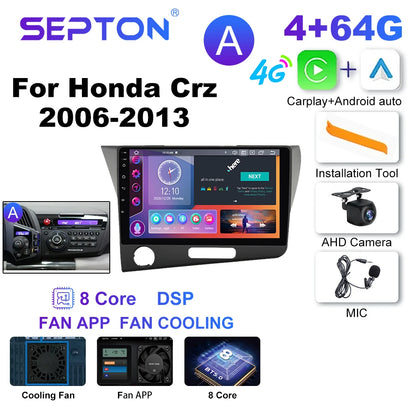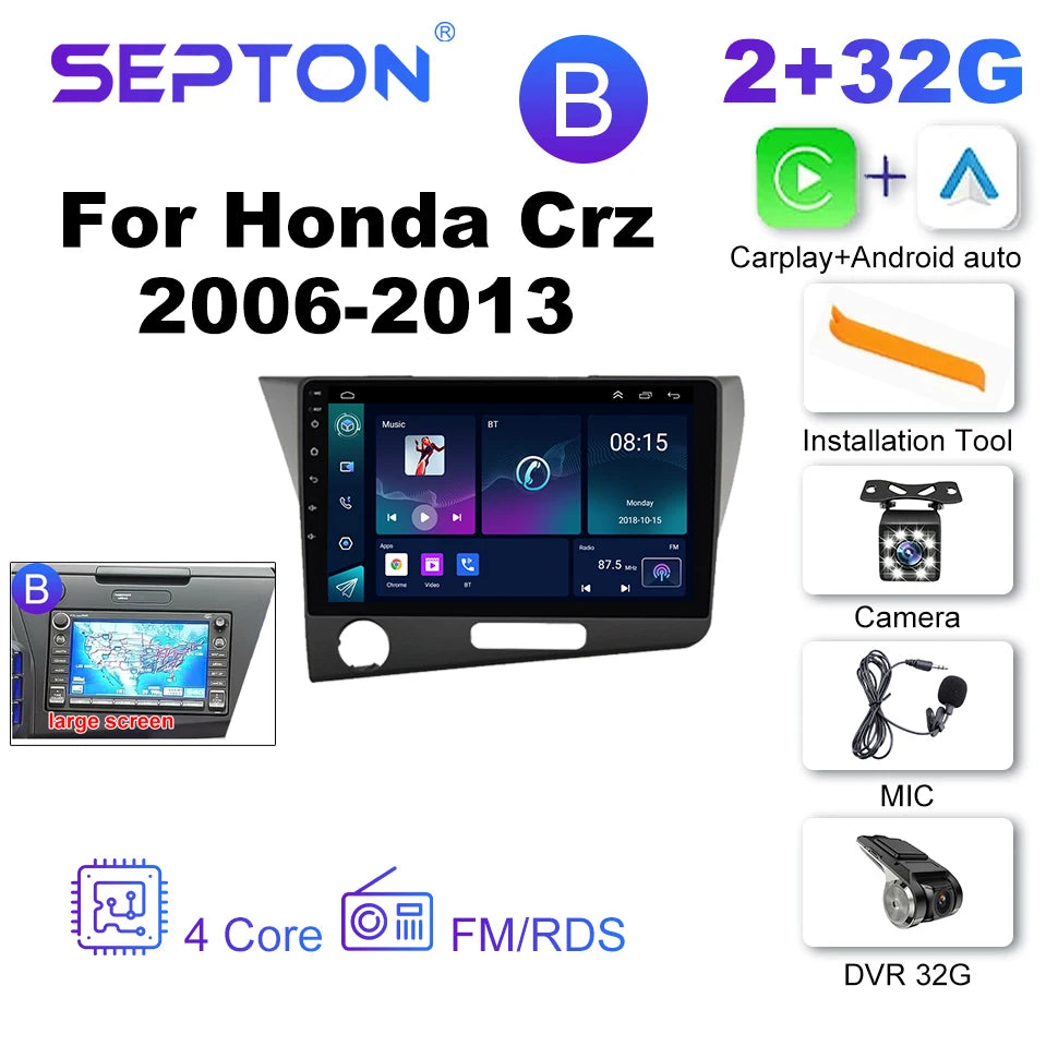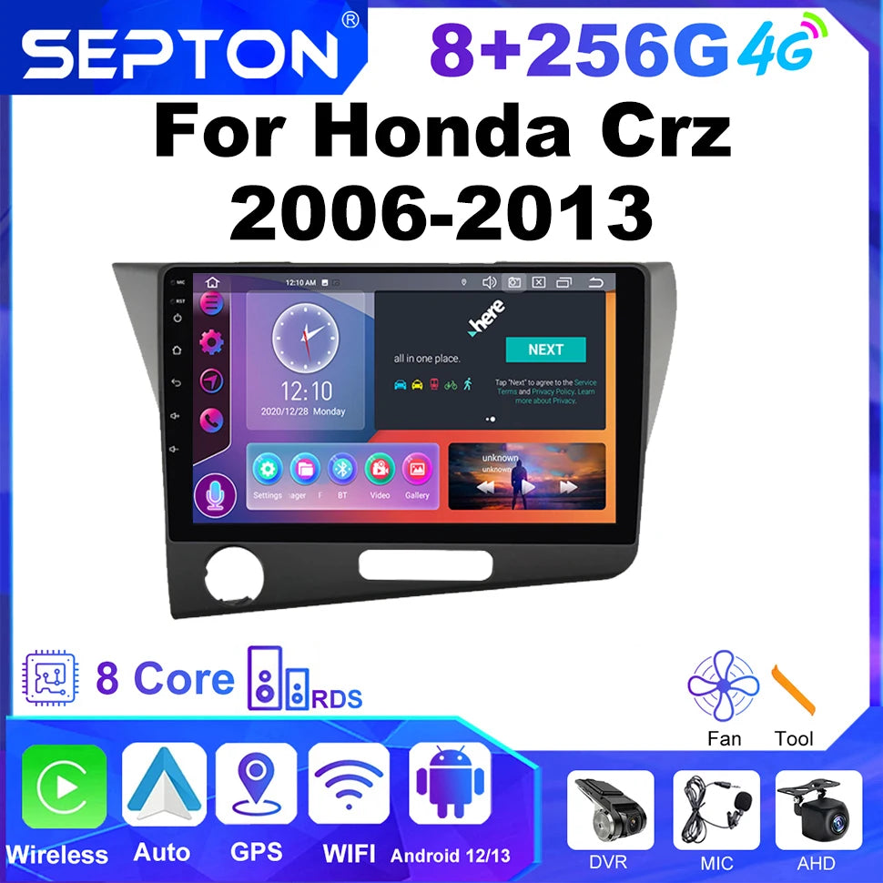 SEPTON Car Radio CarPlay for Honda Crz 2006-2013 Multimedia Player QLED Android Navigation GPS 4G Net 2Din Head Unit WIFI 2 Din