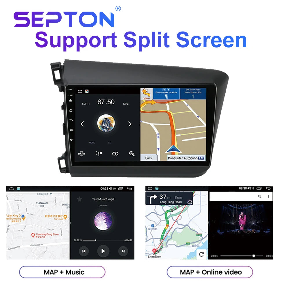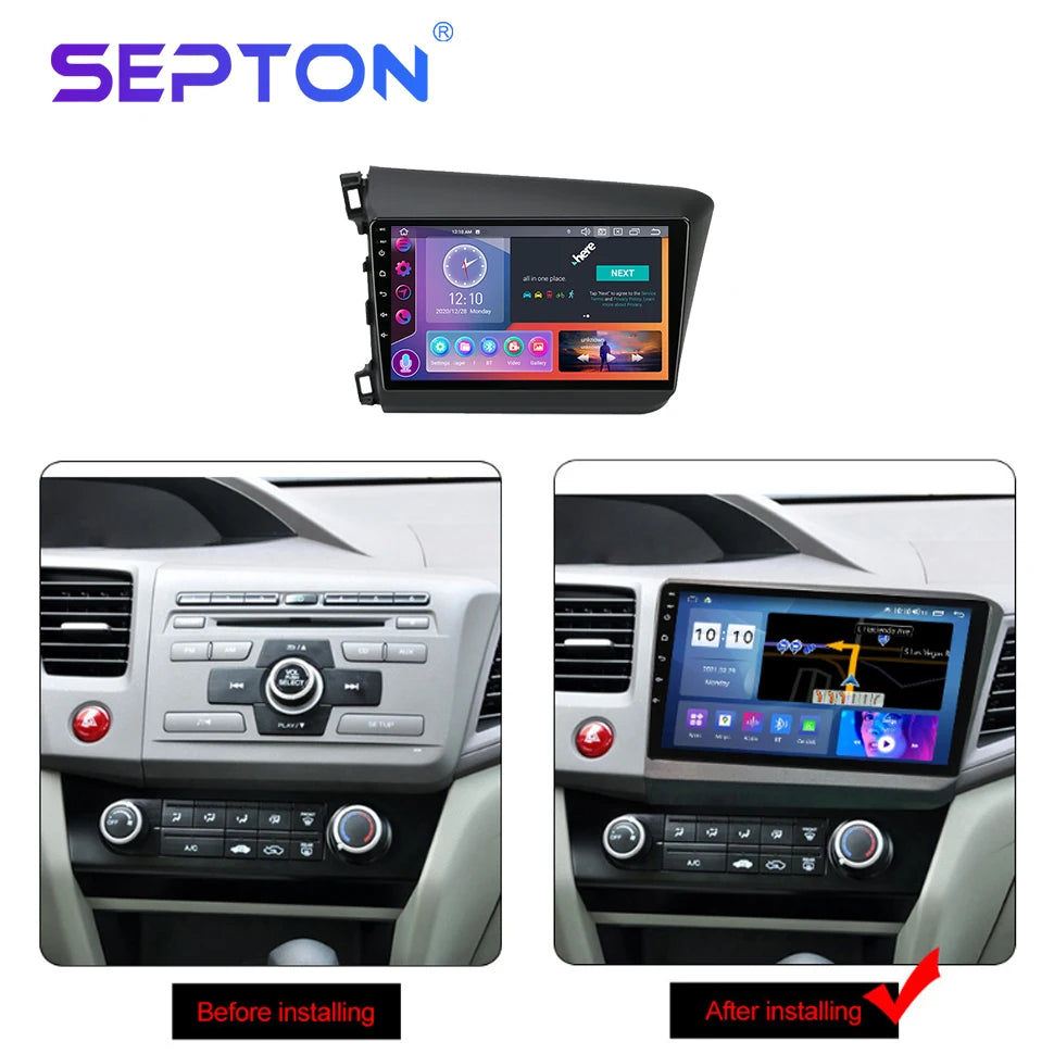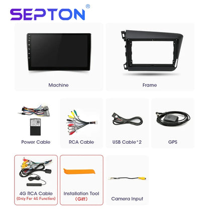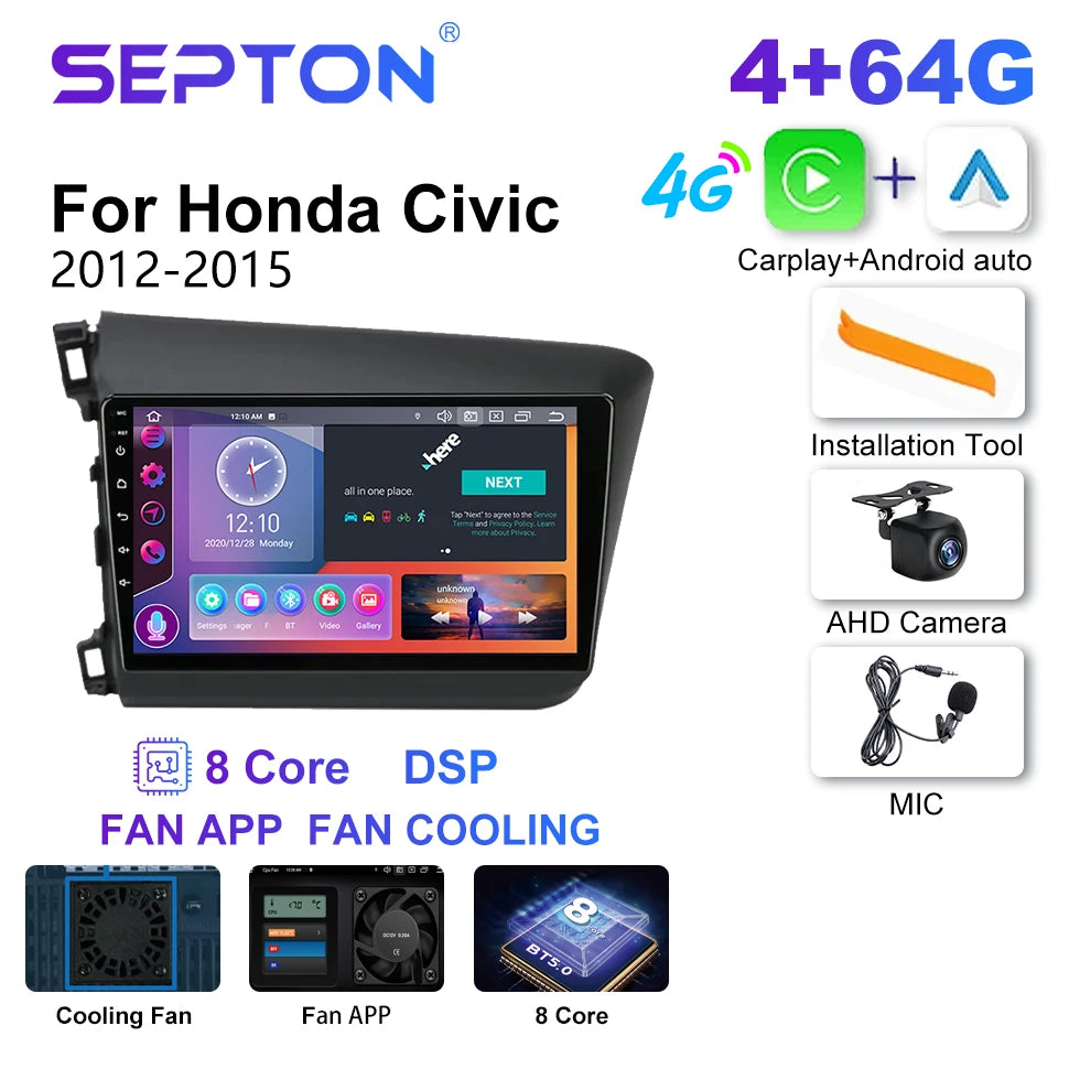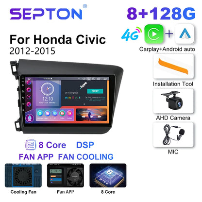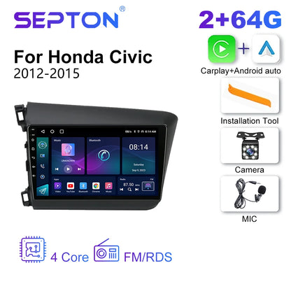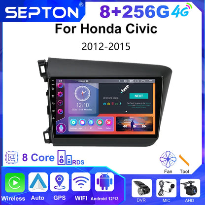 SEPTON Car Radio for Honda Civic 2012 2013 2014 2015 Multimedia Player 2din Carplay Navigation Stereo GPS Android 12 Autoradio