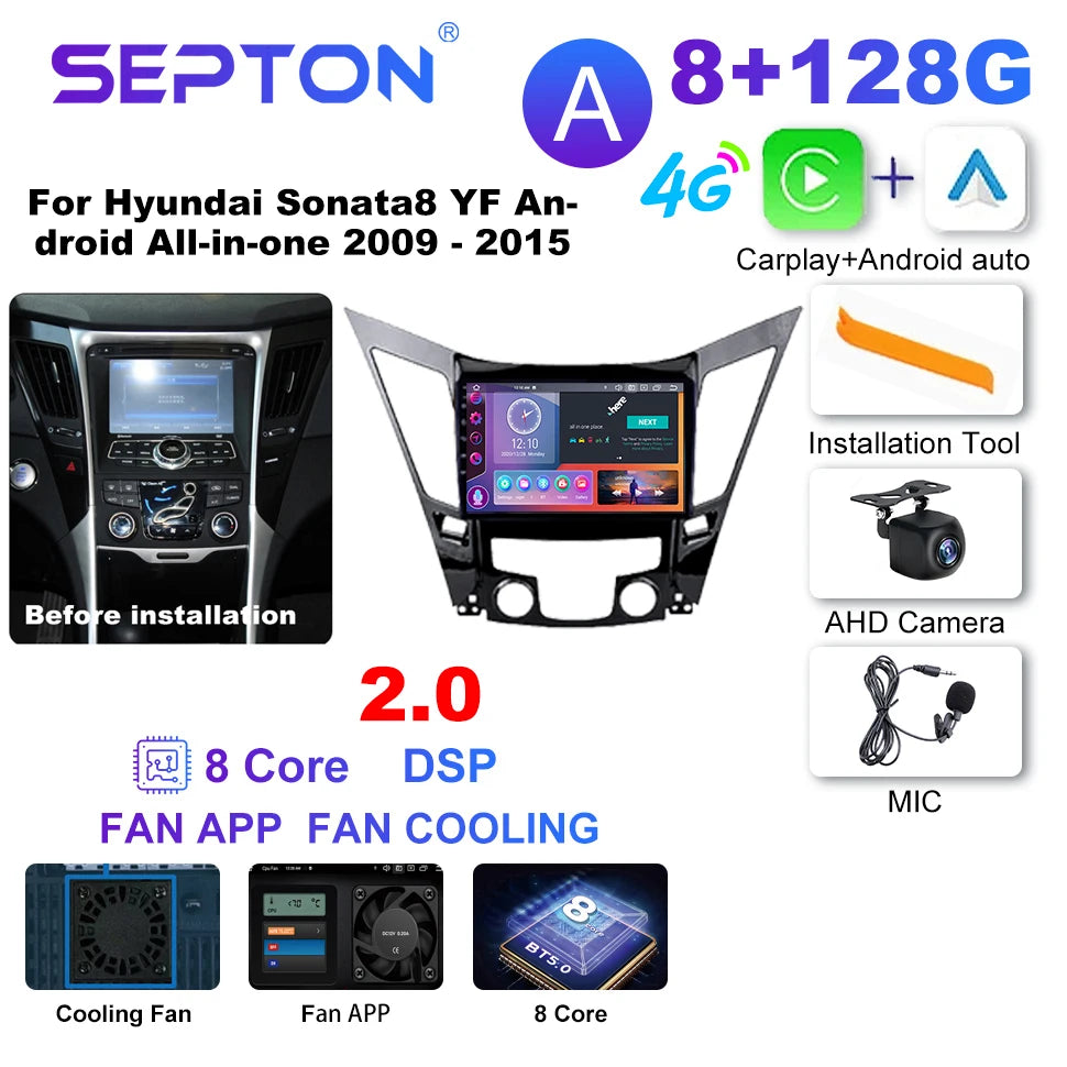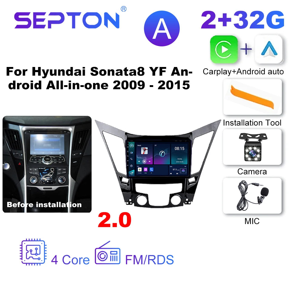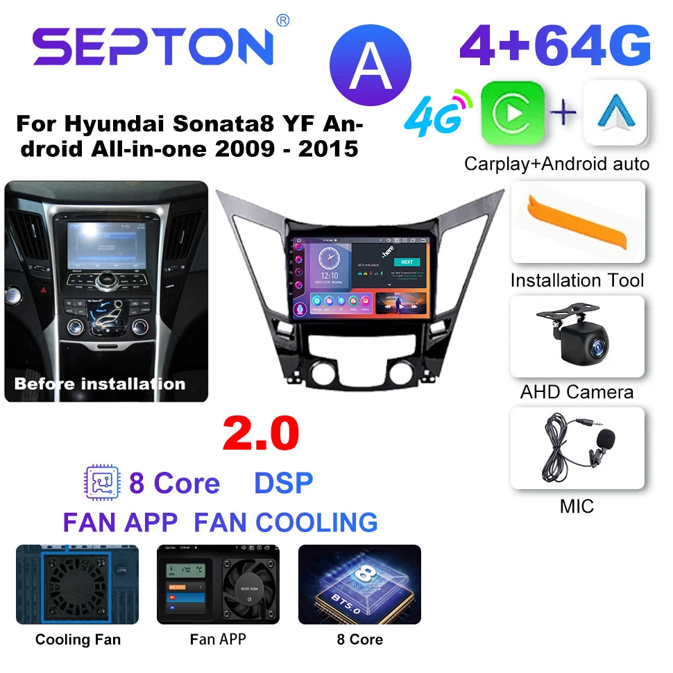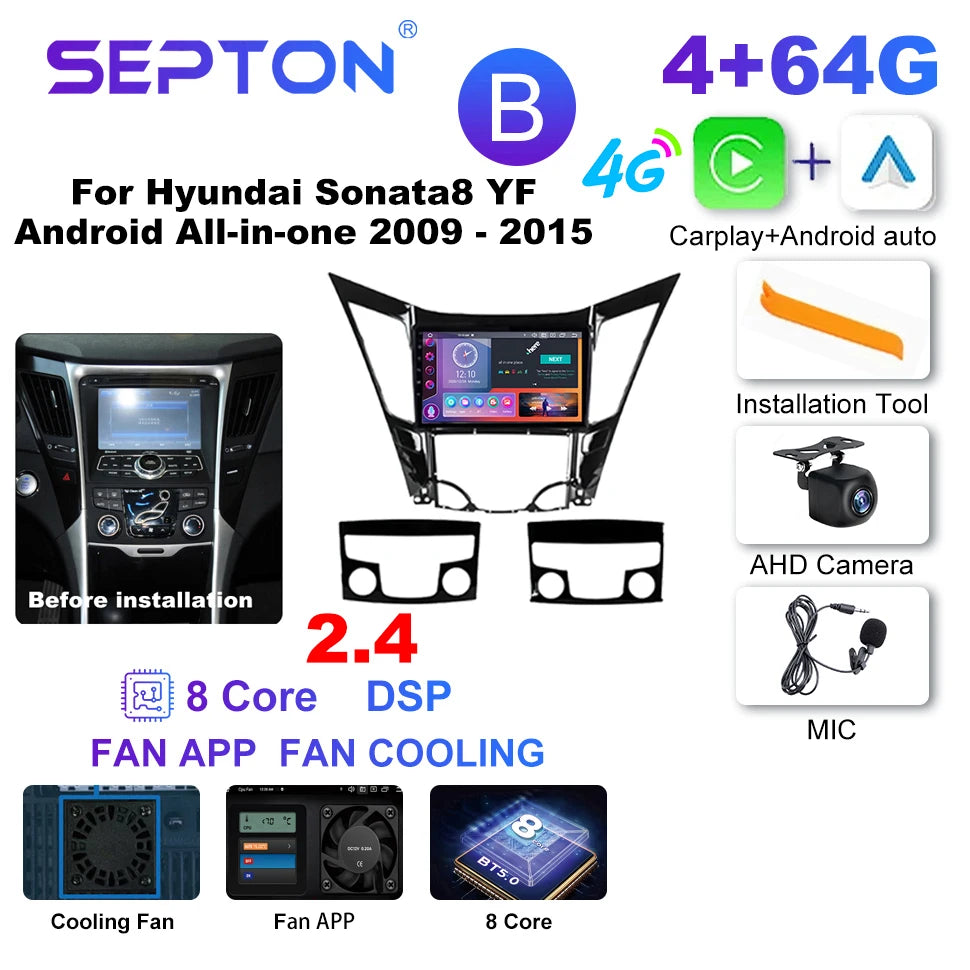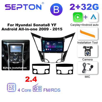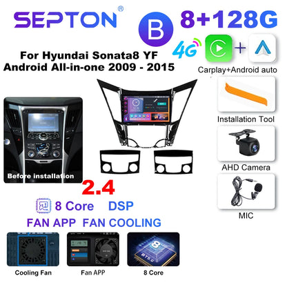 SEPTON Car Radio For Hyundai Sonata8 YF Android All-in-one 2009 - 2015 CarPlay Multimedia Player 4G GPS WIFi 8+256G Automotive