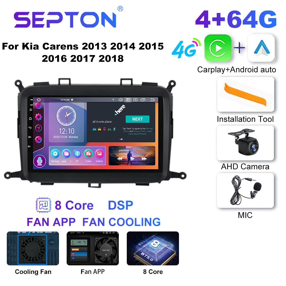 SEPTON Car Radio for Kia Carens 2013 2014 2015 2016 2017 2018 Carplay 8Core 4G BT Android Auto Car Player Automotive Multimedia