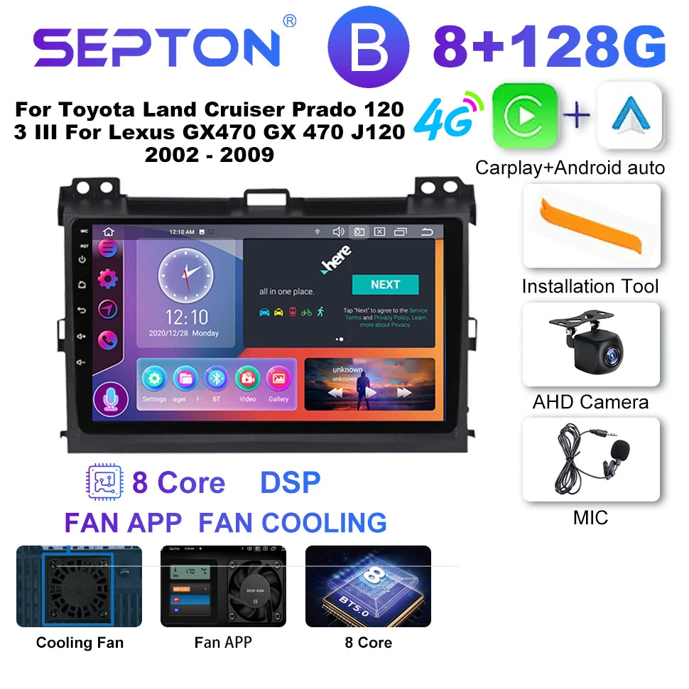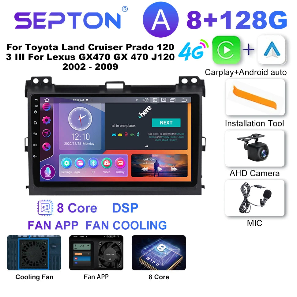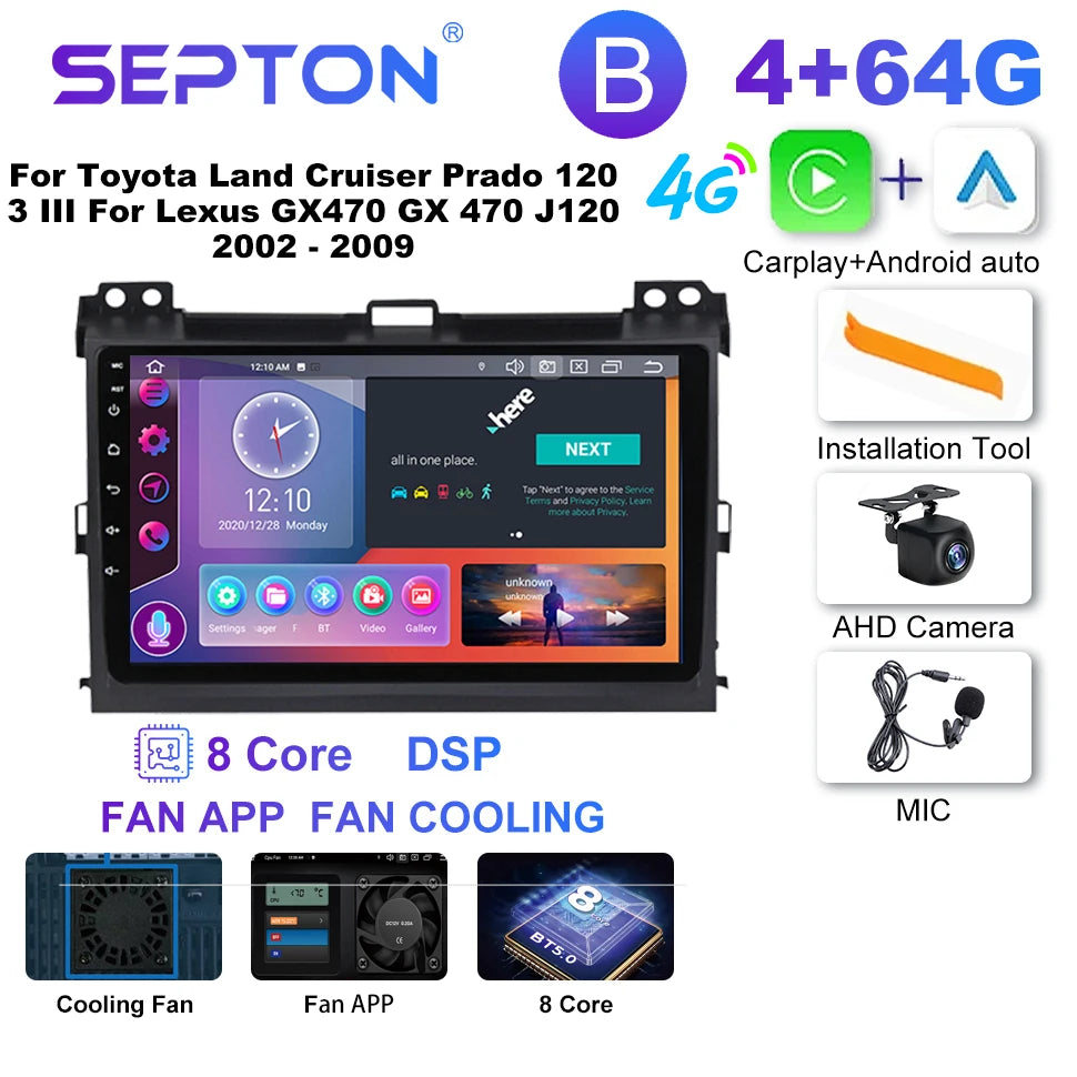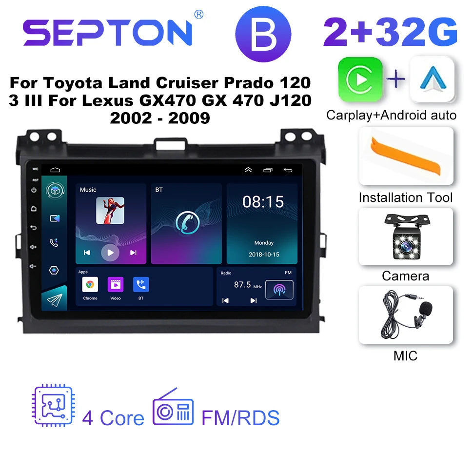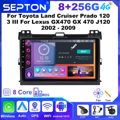 SEPTON Car Radio Stereo Audio for Toyota Land Cruiser Prado 120 3 III for Lexus GX470 GX 470 J120 2002 - 2009