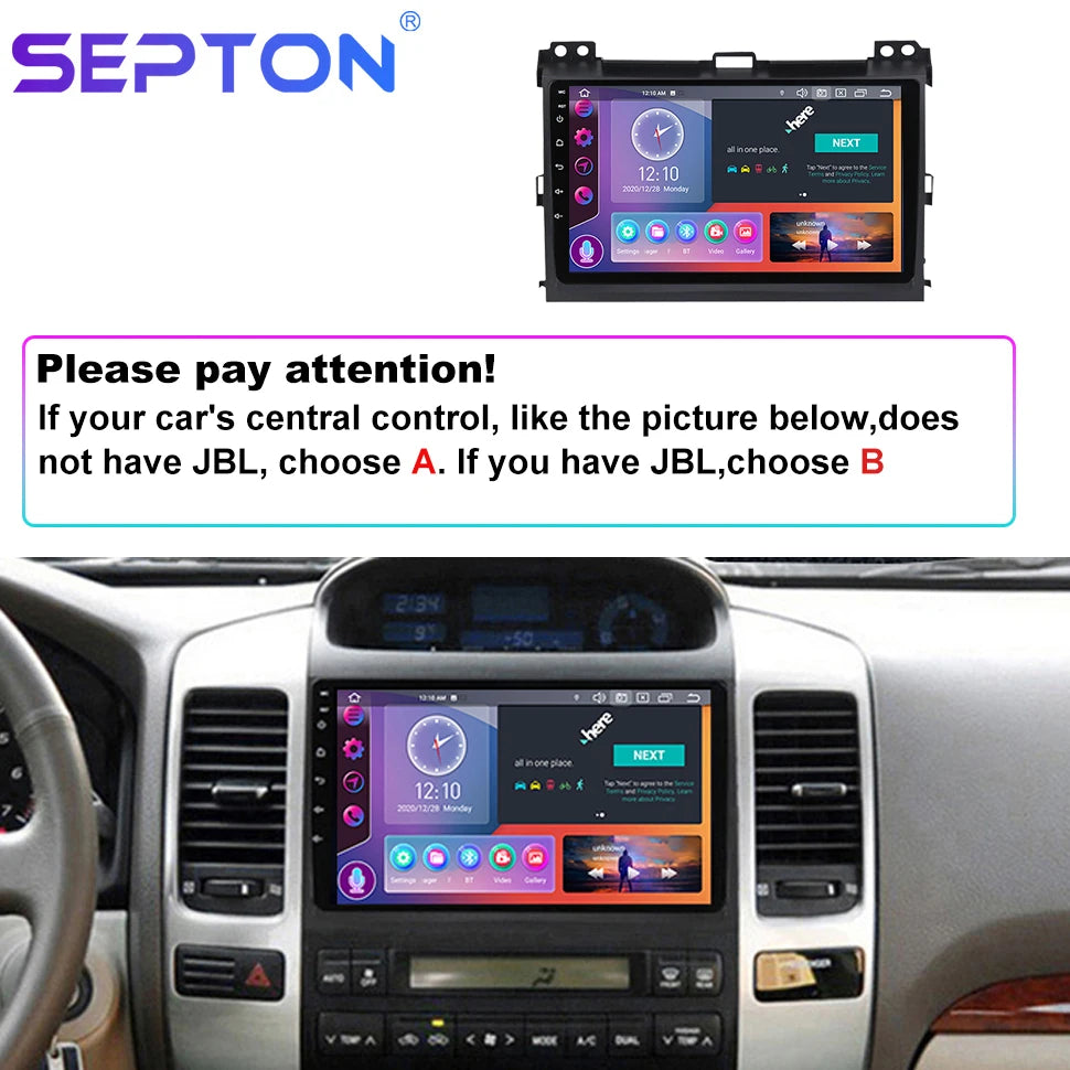 If your car's central control, like the picture below,does not have JBL, choose A.
