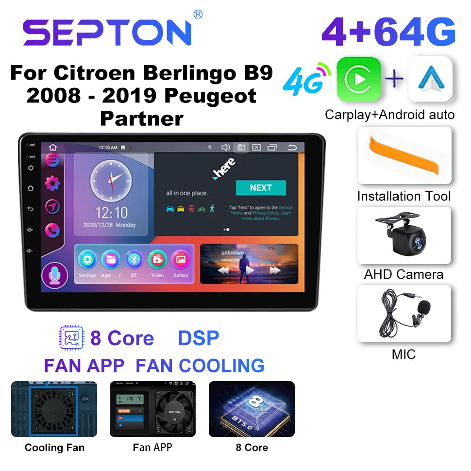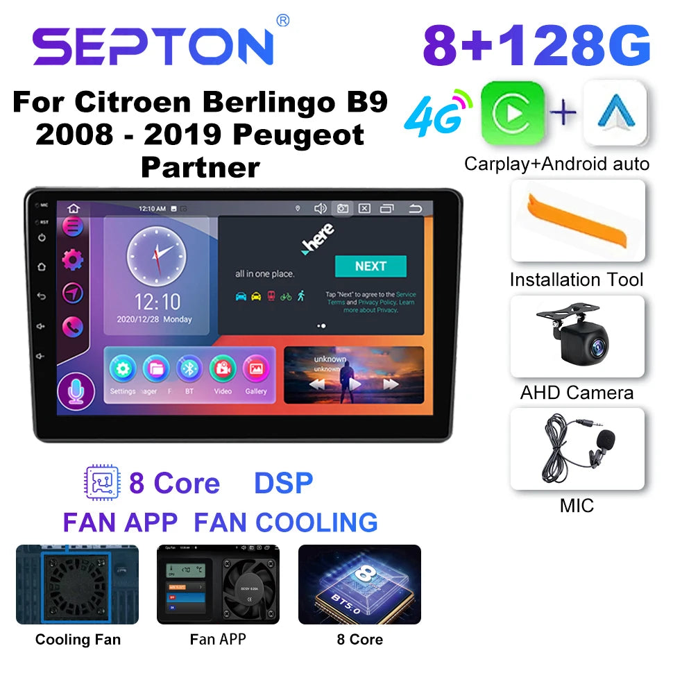 SEPTON Car Radio Stereo for Citroen Berlingo B9 2008 - 2019 Peugeot Partner CarPlay GPS Car Multimedia Player Auto Smart Systems