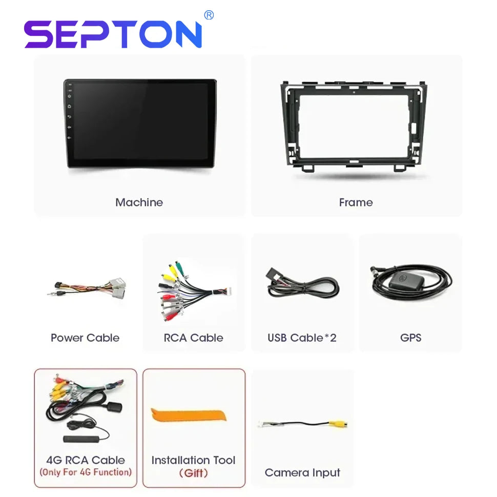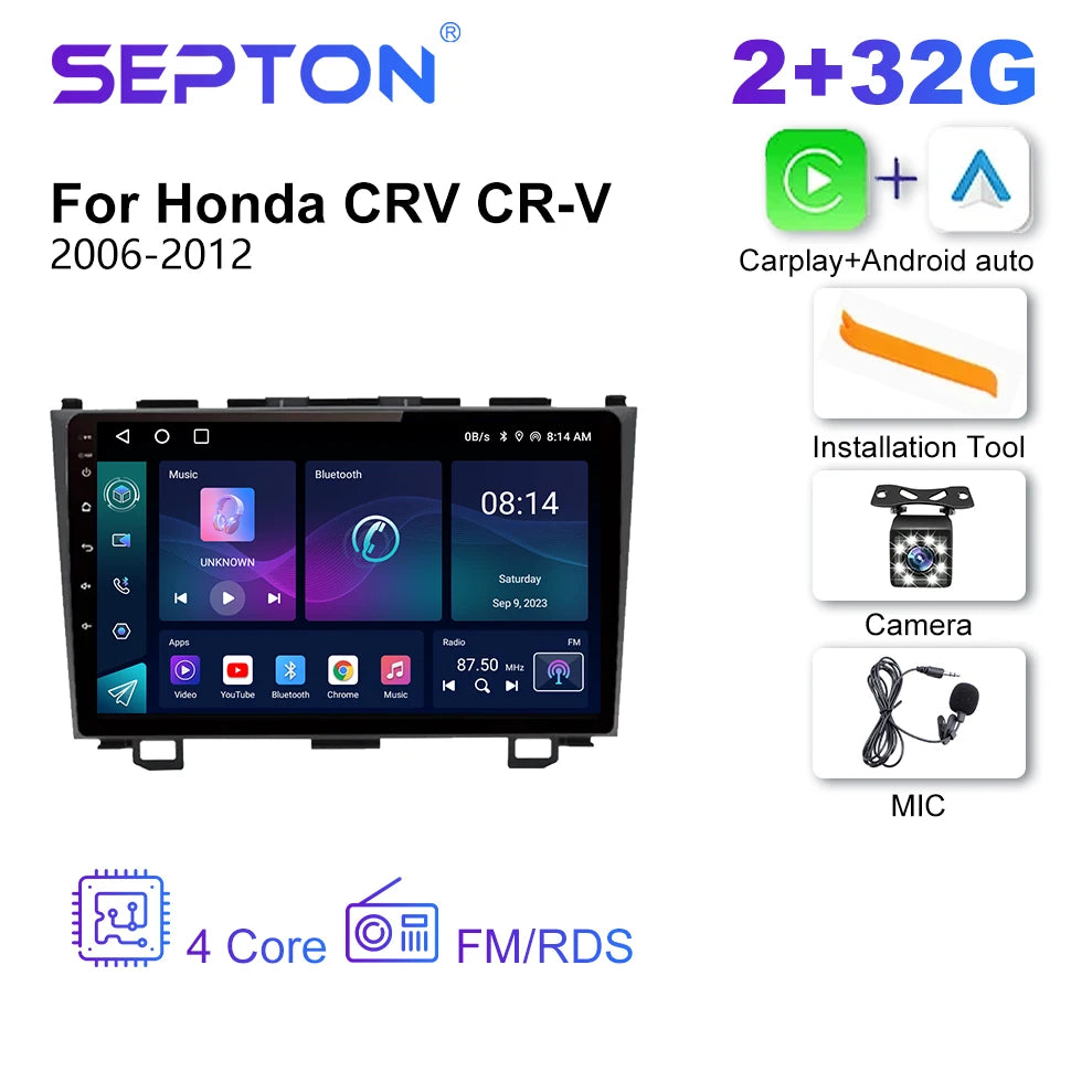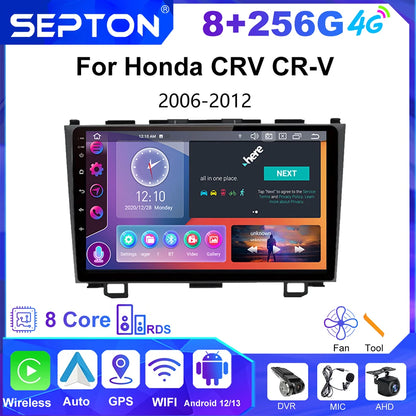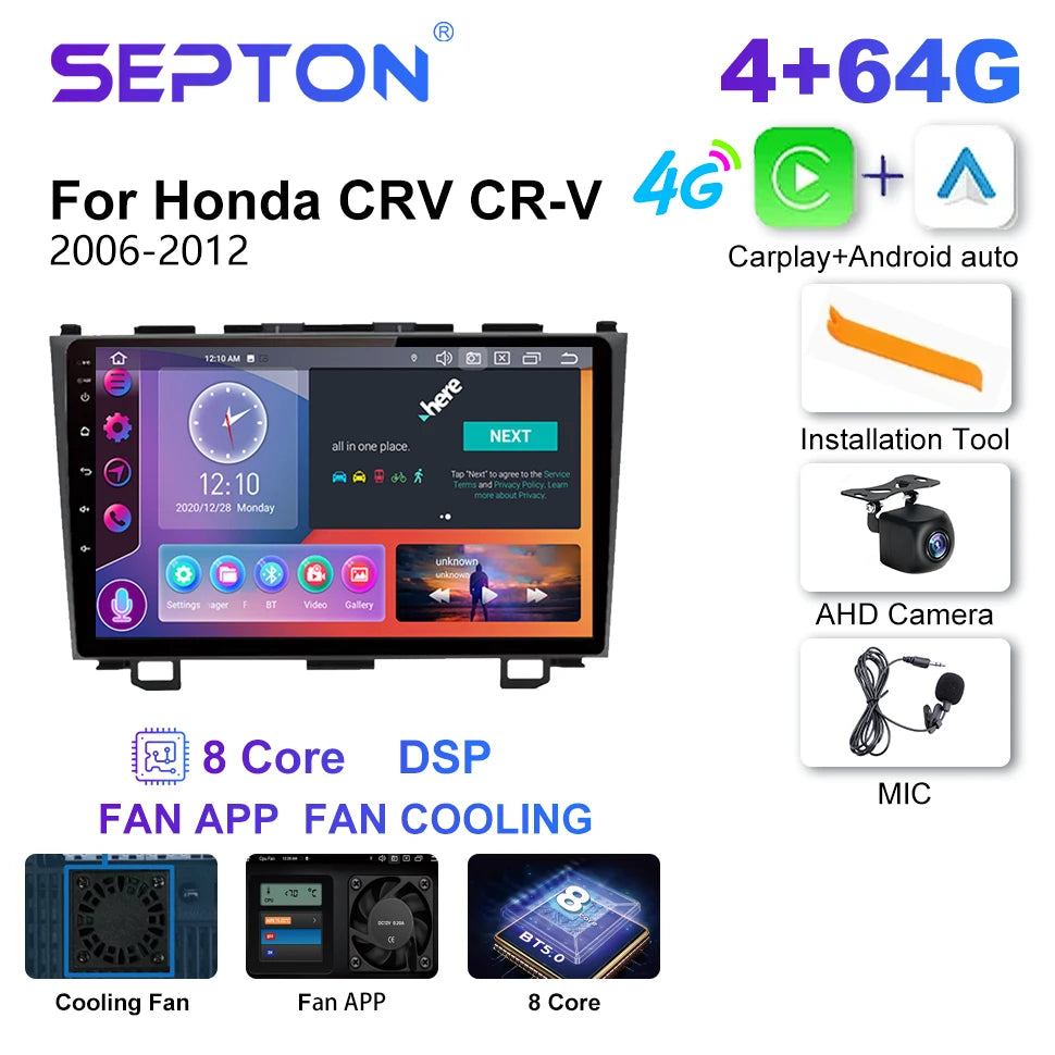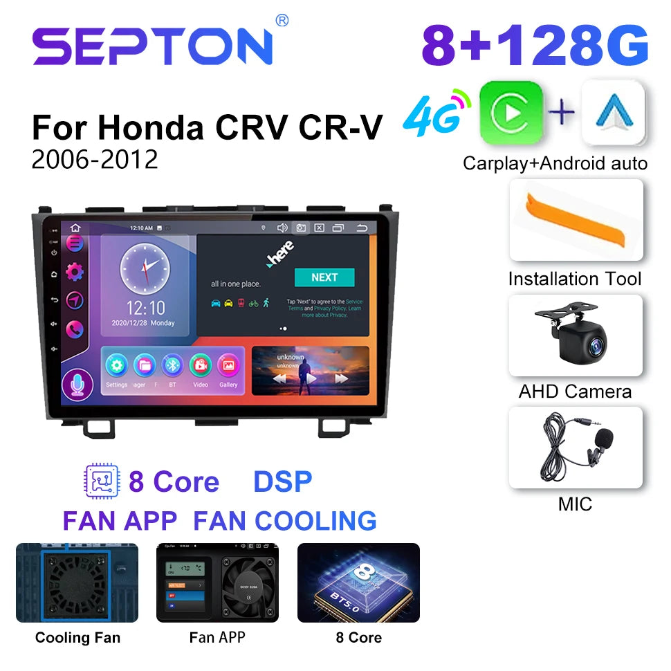 SEPTON Car Stereo Radio for Honda CRV CR-V 2006-2012 Multimedia Video Player CarPlay Navigation GPS 4G Android 12 2Din Headunit