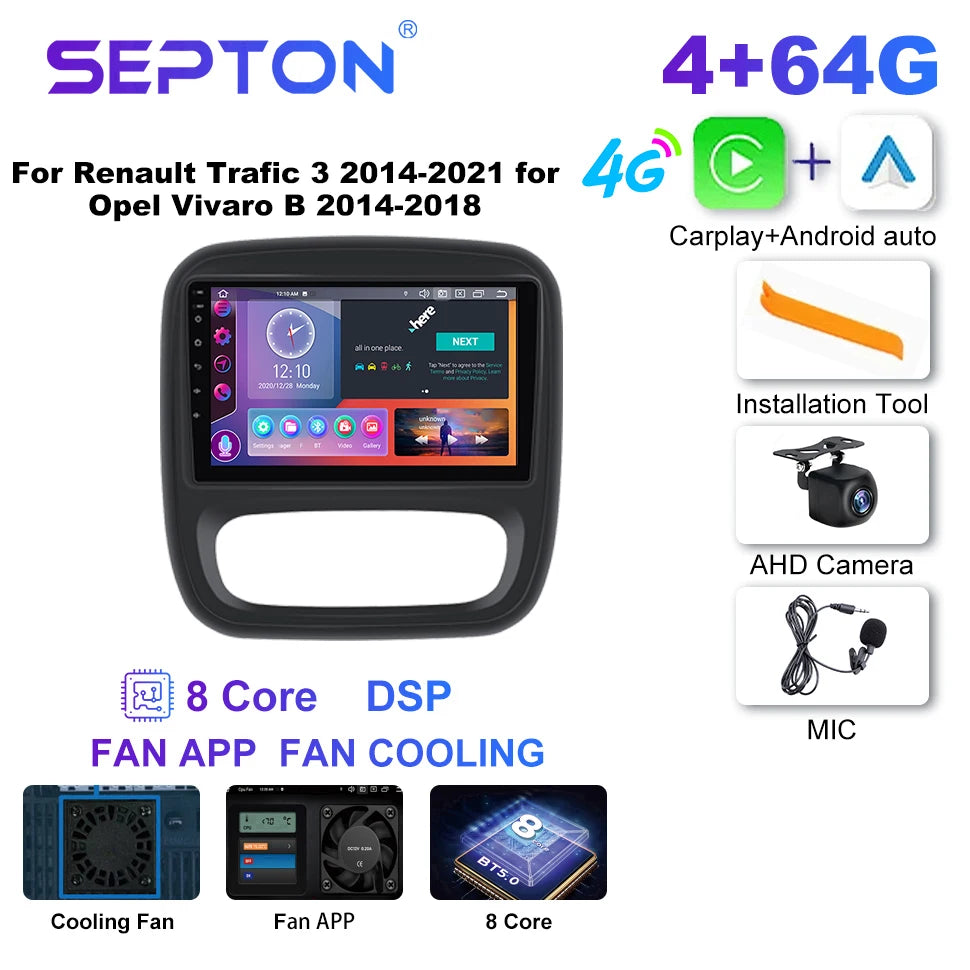 SEPTON Car Stereo Radio Player for Renault Trafic 3 2014-2021 for Opel Vivaro B 2014-2018 CarPlay 8core BT Automotive Multimedia