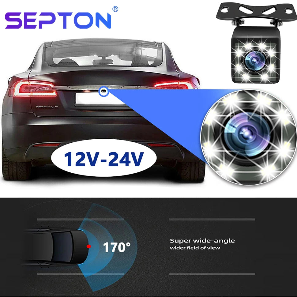 SEPTON High Digital 8LED Flashlight Waterproof Car Rear View Camera Support Night Vision 170 Degree Wide Angle Car Camera